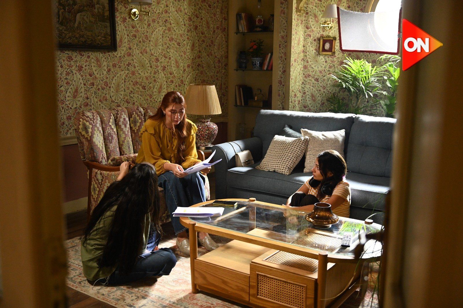 ياسمين العبد وجلا هشام في كواليس مسلسل ميد تيرم