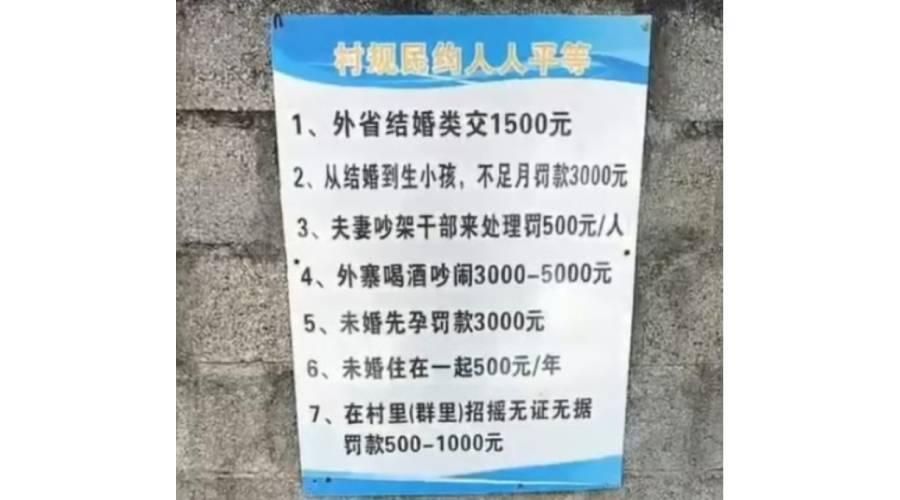 ونصت اللوائح التي حملت عنوان «الجميع متساوون» على فرض غرامة قدرها 3000 يوان (420 دولاراً) في حالات الحمل خارج إطار الزواج أو الولادة قبل مرور 10 أشهر عليه، إضافة إلى غرامة سنوية قدرها 500 يوان على الأزواج الذين يعيشون معاً دون رباط رسمي، و1500 يوان لمن يتزوج من خارج المقاطعة.
