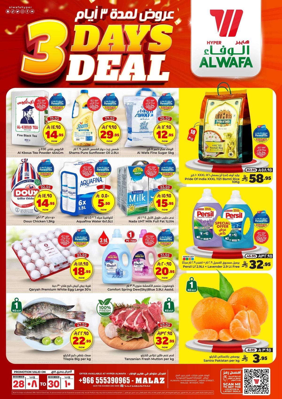 عروض الوفاء هايبر ماركت الطازجة الاحد 8-7-1447هـ بتقدم ليكم شاي الكبوس وحليب بودرة نادك والمياه المعبأة ومنتجات الحليب إلى جانب سكر ناعم وأرز بسمتي فاخر ودجاج مجمد وبيض طازج ومنظفات الغسيل وسوائل معطر ومنعم الأقمشة بالإضافة إلى الأسماك الطازجة واللحوم الحمراء والحمضيات وغيرها من المنتجات باقل سعر