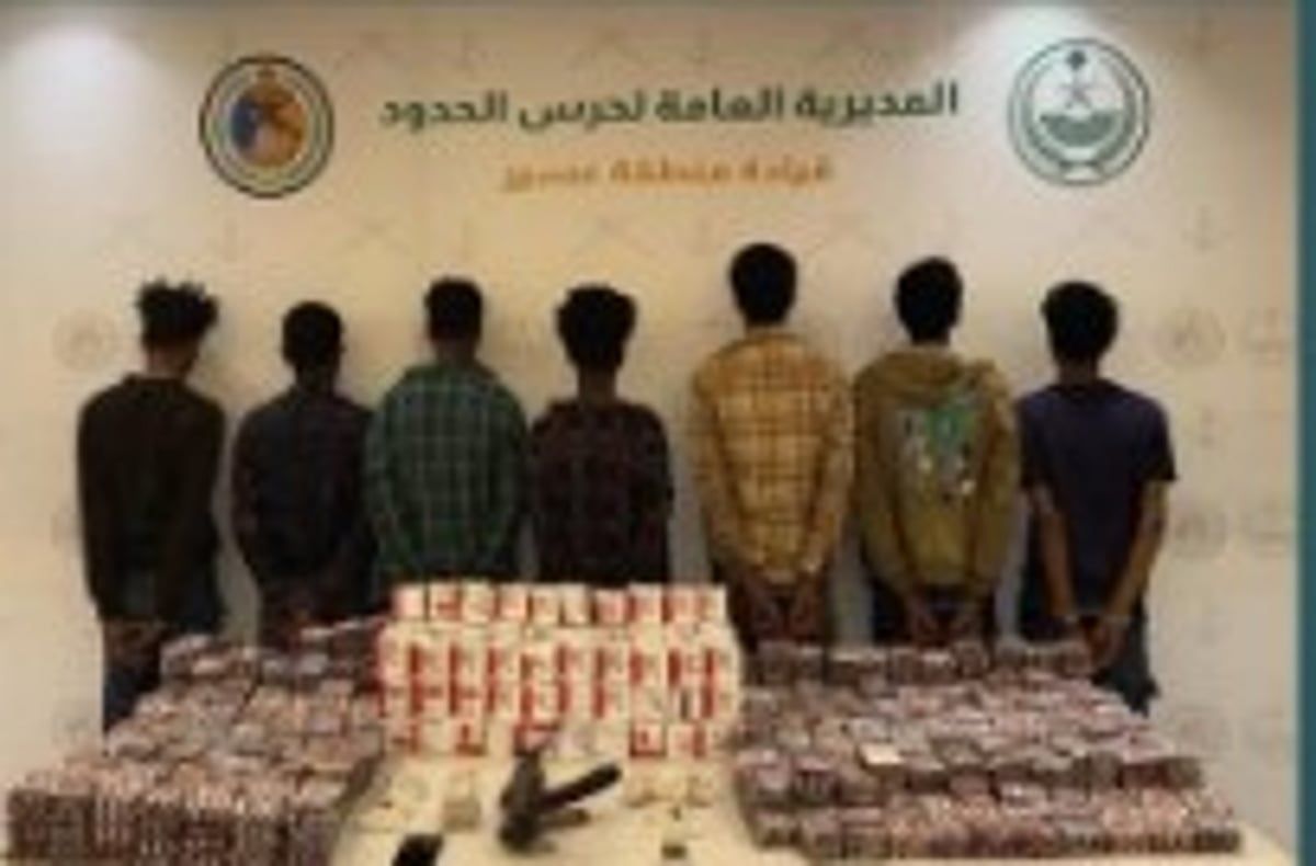 ألقت الدوريات البرية لحرس الحدود في قطاع الربوعة بمنطقة عسير القبض على (7) مخالفين لنظام أمن الحدود من الجنسيتين الإثيوبية والإريترية، لتهريبهم 72.000 قرص خاضع لتنظيم التداول الطبي، و5900 قرص من مادة الإمفيتامين المخدر.