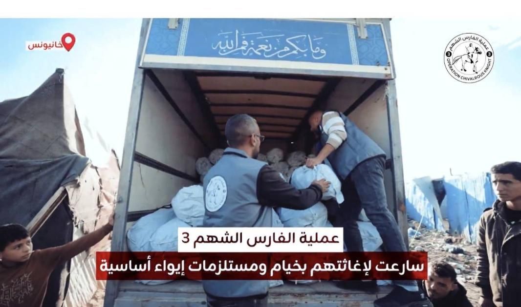 أعرب عدد من أهالي قطاع غزة عن شكرهم لدولة العربية المتحدة، وذلك بعد أن قدمت عملية «الفارس الشهم 3»، خياماً ومستلزمات إيواء أساسية إلى عشرات العائلات النازحة في خان يونس، لتكون عوناً لهم، في وقت يعيشون فيه أوضاعاً مأساوية، خاصة في ظل الأمطار والظروف الجوية القاسية.