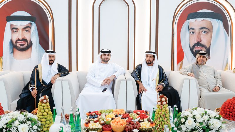 حضر سمو الشيخ منصور بن محمد بن راشد آل مكتوم، رئيس اللجنة الأولمبية الوطنية، حفل الاستقبال الذي أقيم بمناسبة زفاف أحمد علي مهير بليشة الكتبي على كريمة عبيد مبارك علي شنة الكتبي، وزفاف علي مبارك علي يعروف شنة الكتبي على كريمة علي مهير بليشة الكتبي، وذلك في إمارة الشارقة، وهنّأ سموه العريسين وذويهما، متمنياً لهما حياةً مكللة بالاستقرار والتوفيق والسعادة.