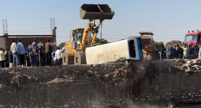 الإثنين، 29 ديسمبر 2025 12:12 ماستعان رجال المباحث بمديرية أمن الجيزة، بلودر، لاستخراج سيارة ميكروباص، سقطت بترعة المريوطية في البدرشين، صباح اليوم، مما أسفر عن مصرع شخصين يستقلانها، بالإضافة إلى مصرع شاب خلال محاولته إنقاذهما، وتمكن رجال الإنقاذ النهري من انتشال جثث الضحايا، وأخطرت النيابة للتحقيق.