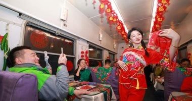 ركاب القطار يستمتعون بالرسومات والألعاب التقليدية