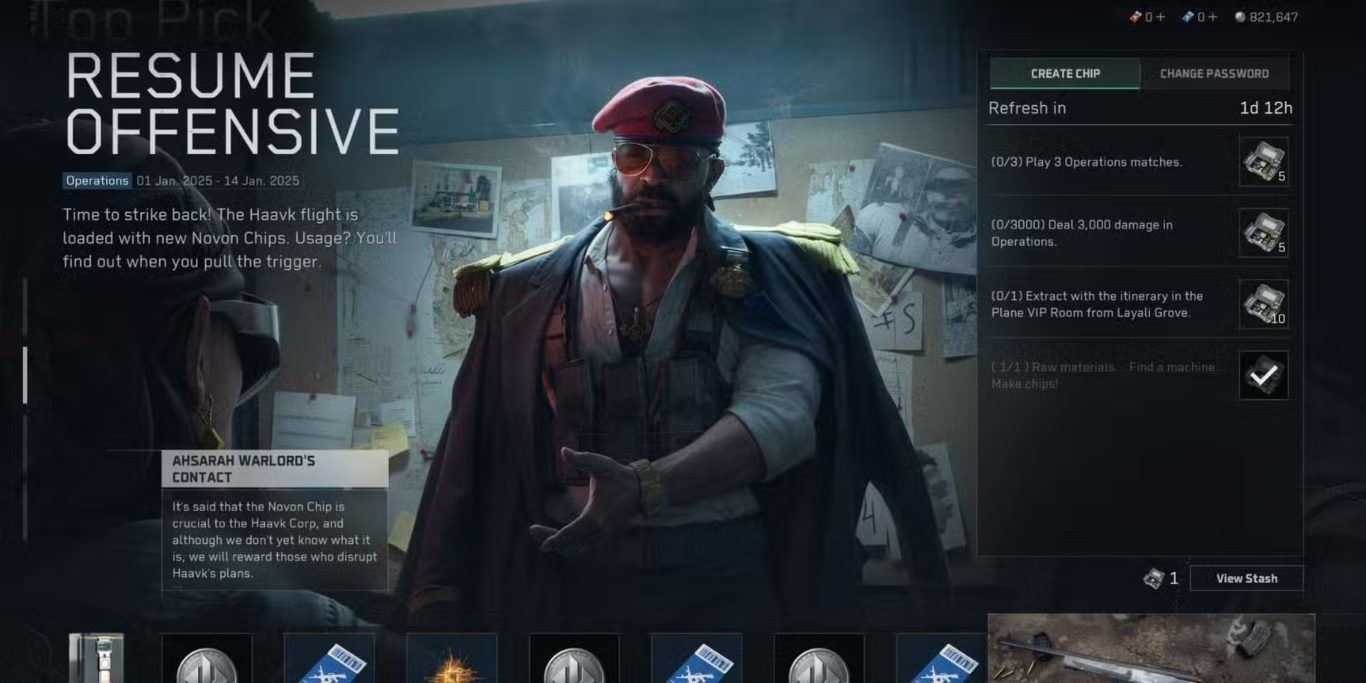 يؤدي إكمال المهام ضمن حدث Resume Offensive إلى الحصول على Novon Chip Material Boxes. ويُعد الحصول على هذه الصناديق أمرًا ضروريًا قبل التمكّن من صناعة شرائح Novon. - إدخال صناديق المواد إلى مباريات Operations.