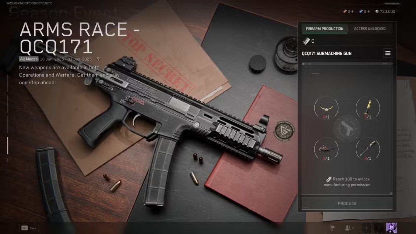 على عكس أغلب الأسلحة في اللعبة خلال موسم Starfall، يتم فتح سلاح CQC171 عبر حدث خاص يُدعى Arms Race – CQC171. هذا الحدث محدود المدة ويستمر من 18 يناير حتى 31 يناير. ولحسن الحظ، فإن الحدث غير معقّد على الإطلاق، ويمكن للاعبين إنهاؤه بسهولة حتى دون التركيز عليه بشكل مباشر.