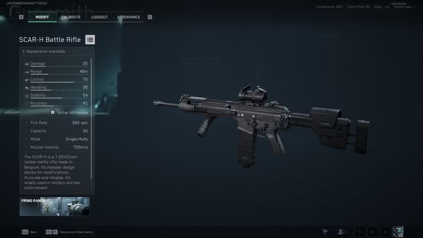 باستخدام هذا الإعداد، ستحصل بندقية SCAR-H على الإحصاءات التالية.