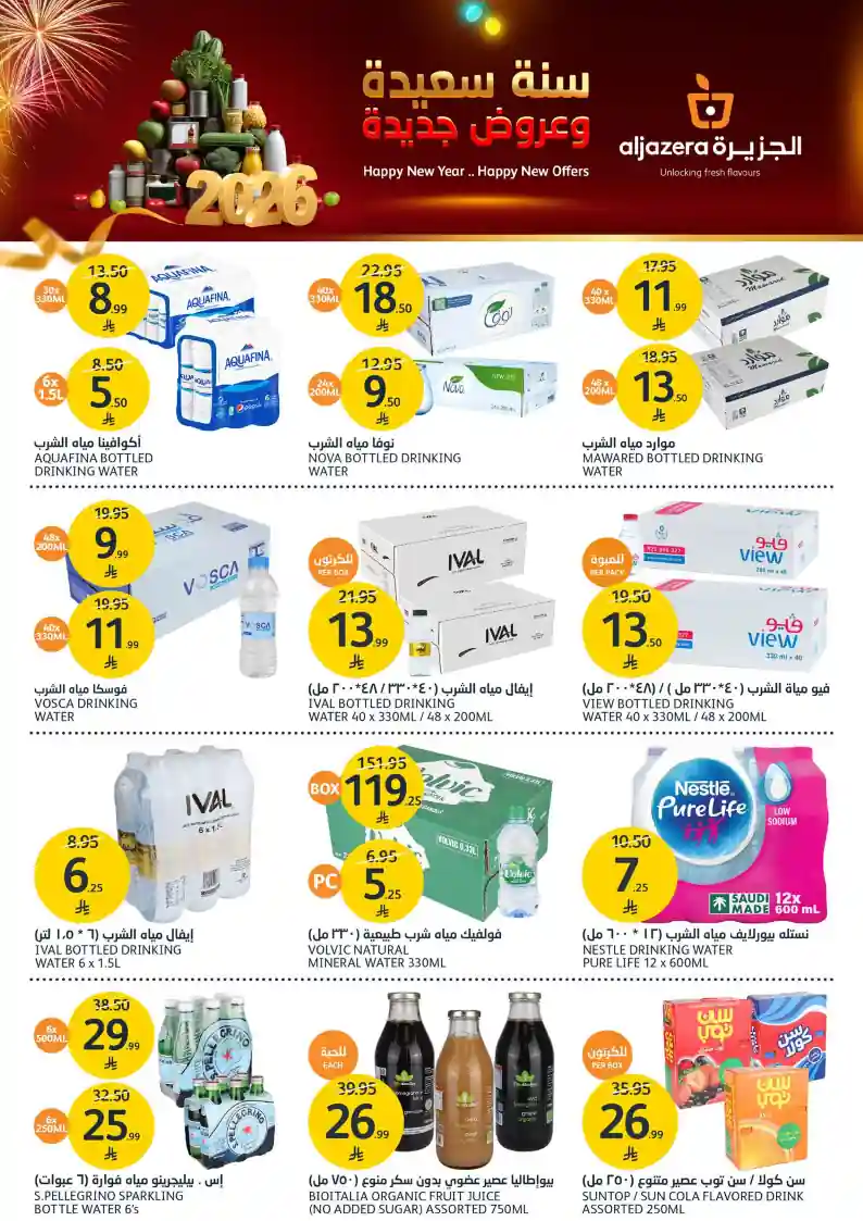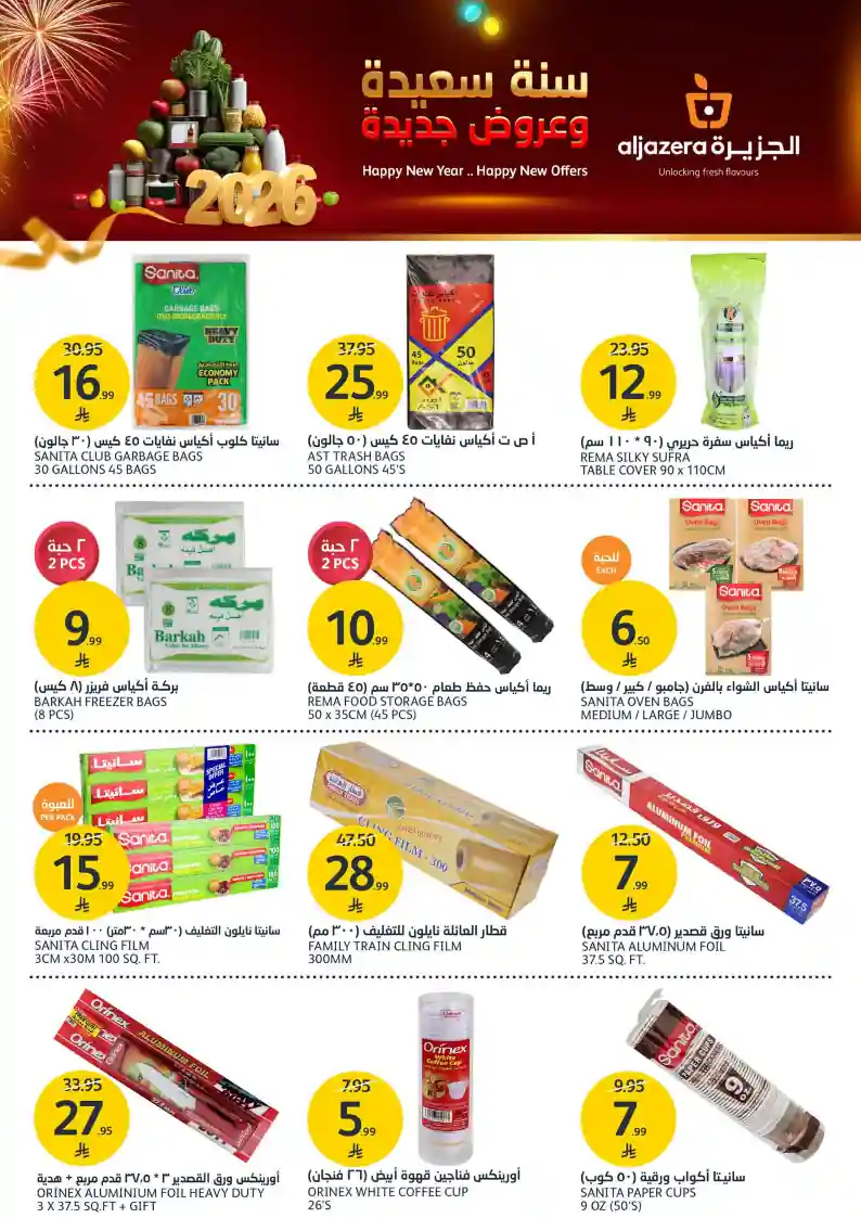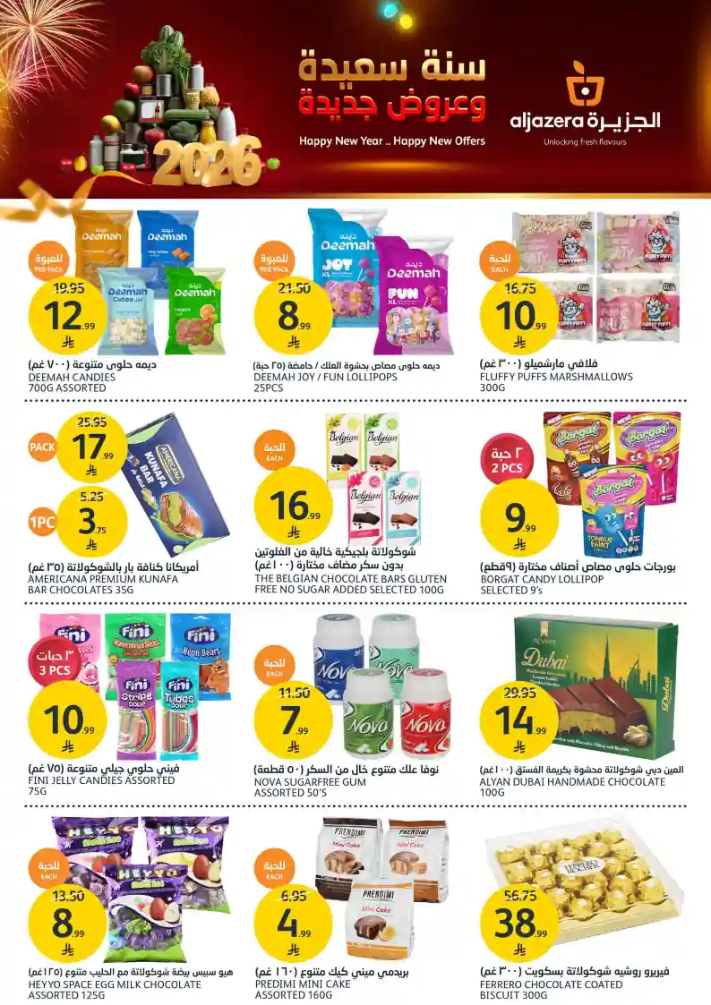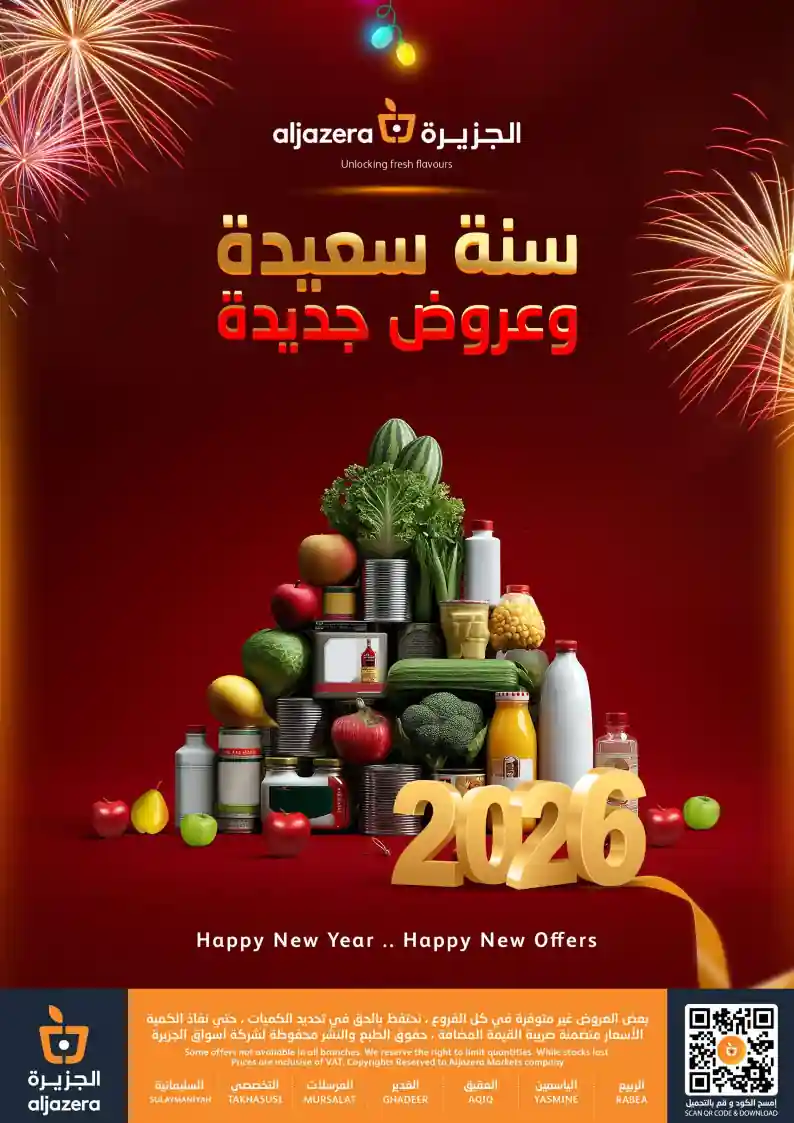 عروض نت تقدم لكم احدث عروض اسواق الجزيرة السعودية الجديدة فى صفحة واحدة – العروض الاسبوعية من اسواق الجزيرة – و ذلك من 31 ديسمبر حتى 6 يناير 2026 او حتى نفاذ الكمية من اسواق الجزيرة بجميع الفروع.