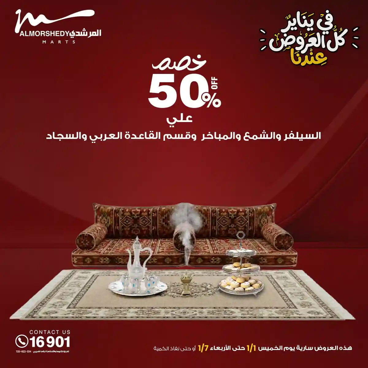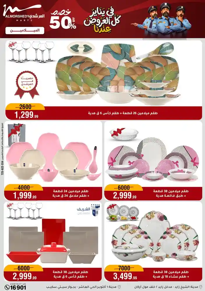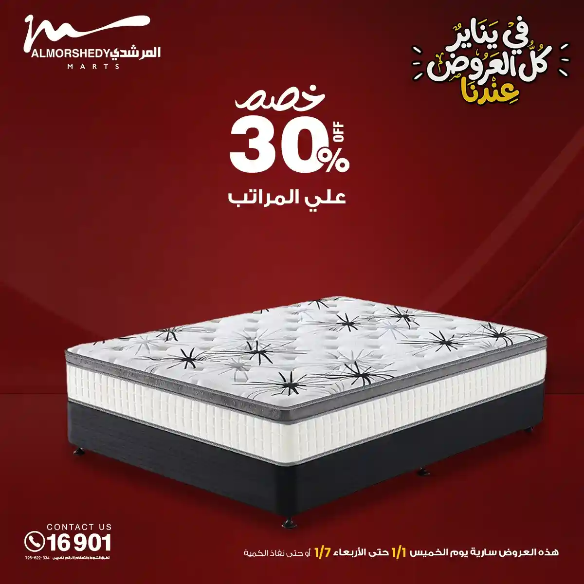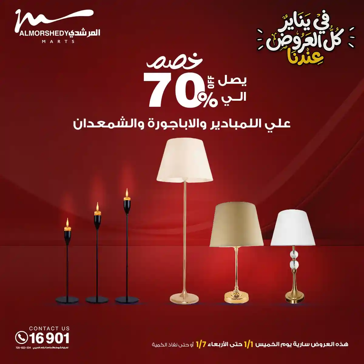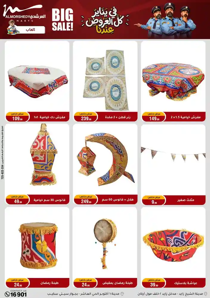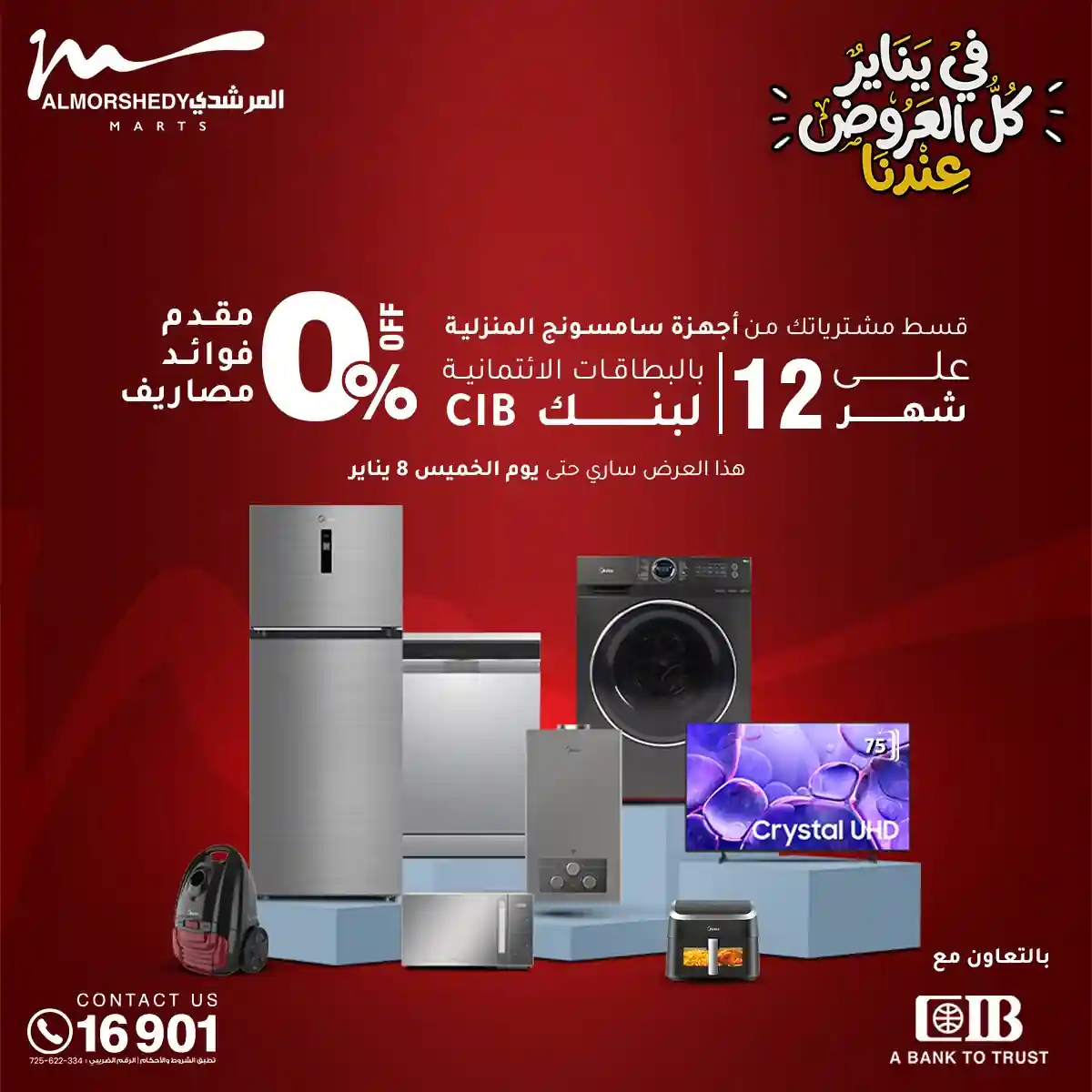 عروض جديدة من أسواق المرشدي مع اكبر مهرجان للتخفيضات في مصر خصومات حتى 70% وقسط براحتك بدون فوائد بأسعار العروض المخفضة على 12 شهر لحاملي بطاقة ائتمان CIB أو قسط براحتك مع VALU بدون مقدم حتى 60 شهر أو بدون مقدم وبدون فوائد مع نظام هاتريك وكمان النقل مجاني للقاهرة والجيزة والقليوبية على قسم الأجهزة الكهربائية والموبيليا والمراتب ( تطبق شروط المكان ) خصومات على جميع الأقسام أدوات منزلية – اجهزة كهربائية – مفروشات – موبيليا – نجف – سجاد – مراتب – ملابس رجالي وحريمي وأطفالي ومستلزمات ولعب الأطفال وجاليري وأقسام تانية كتير استمتع بالتسوق في أسواق المرشدي مع أكتر من 12 قسم و أكثر من 10,000 منتج يعني كل اللي بتحلم بيه عند المرشدي هتلاقيه