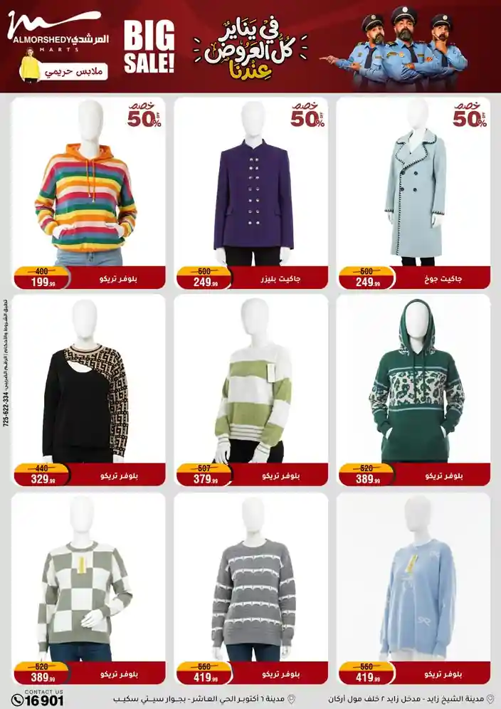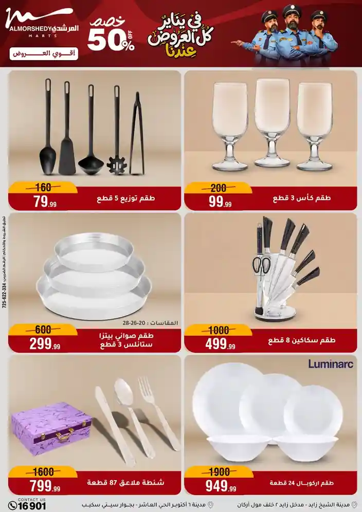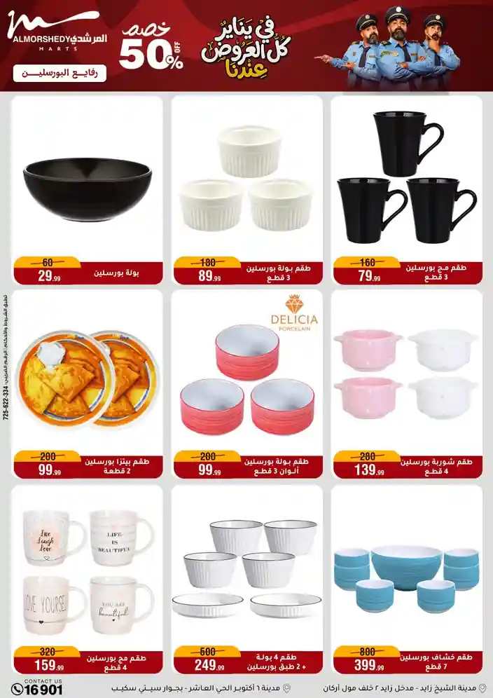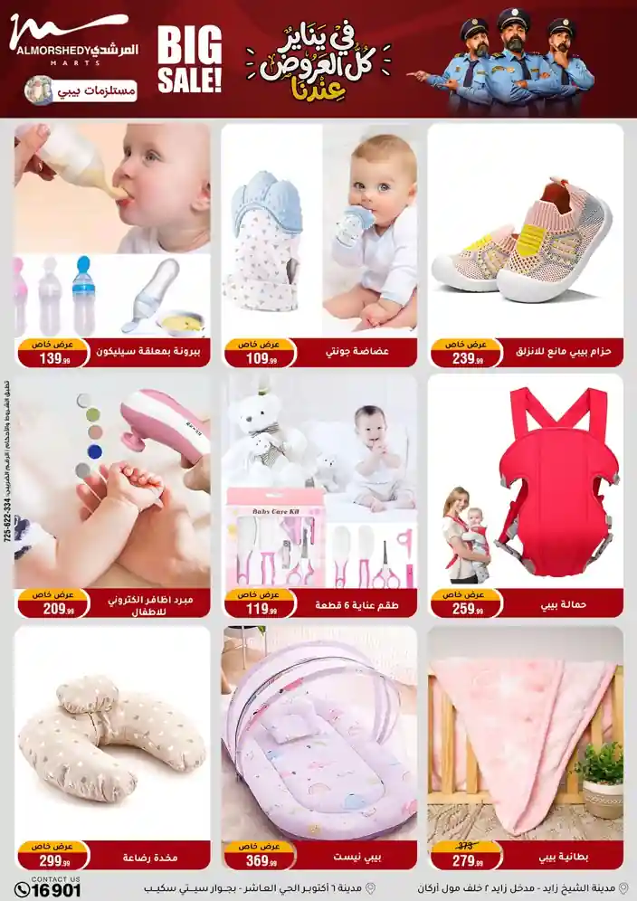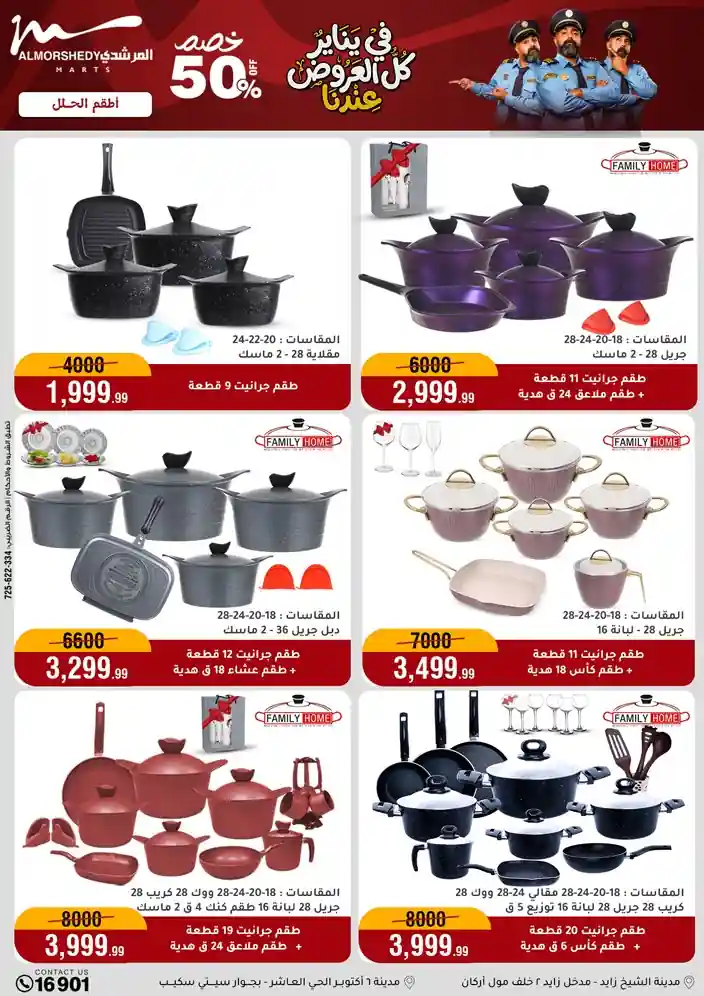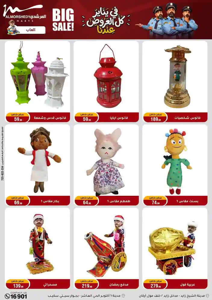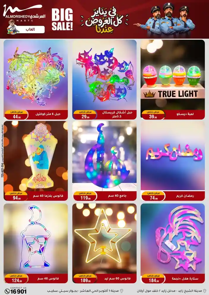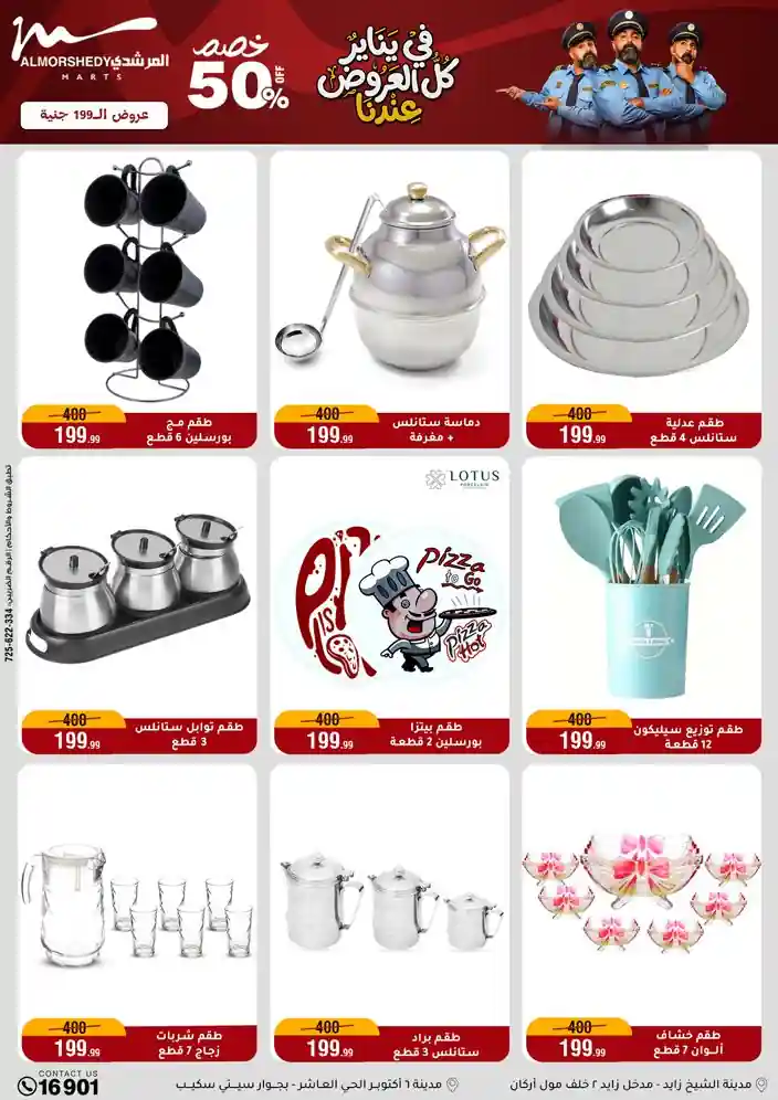 عروض جديدة من أسواق المرشدي مع اكبر مهرجان للتخفيضات في مصر خصومات حتى 70% وقسط براحتك بدون فوائد بأسعار العروض المخفضة على 12 شهر لحاملي بطاقة ائتمان CIB أو قسط براحتك مع VALU بدون مقدم حتى 60 شهر أو بدون مقدم وبدون فوائد مع نظام هاتريك وكمان النقل مجاني للقاهرة والجيزة والقليوبية على قسم الأجهزة الكهربائية والموبيليا والمراتب ( تطبق شروط المكان ) خصومات على جميع الأقسام أدوات منزلية – اجهزة كهربائية – مفروشات – موبيليا – نجف – سجاد – مراتب – ملابس رجالي وحريمي وأطفالي ومستلزمات ولعب الأطفال وجاليري وأقسام تانية كتير استمتع بالتسوق في أسواق المرشدي مع أكتر من 12 قسم و أكثر من 10,000 منتج يعني كل اللي بتحلم بيه عند المرشدي هتلاقيه