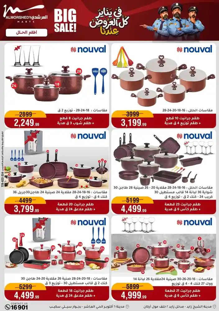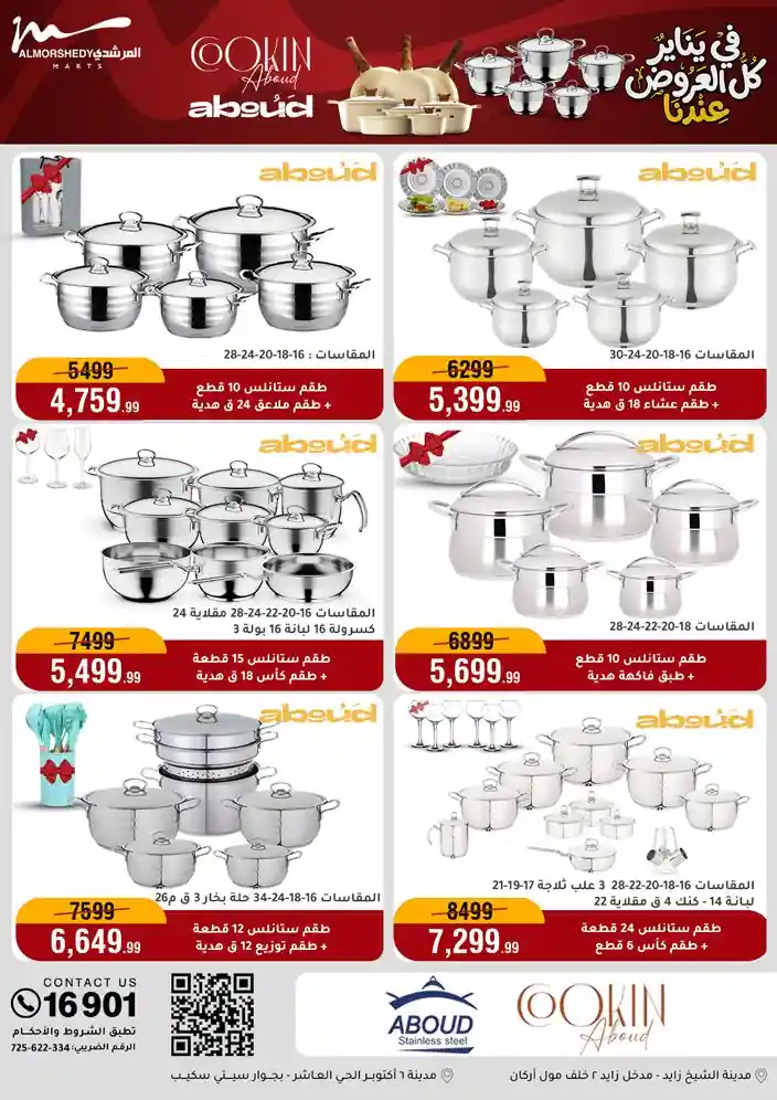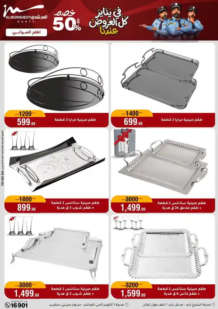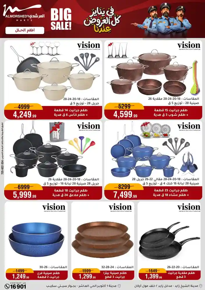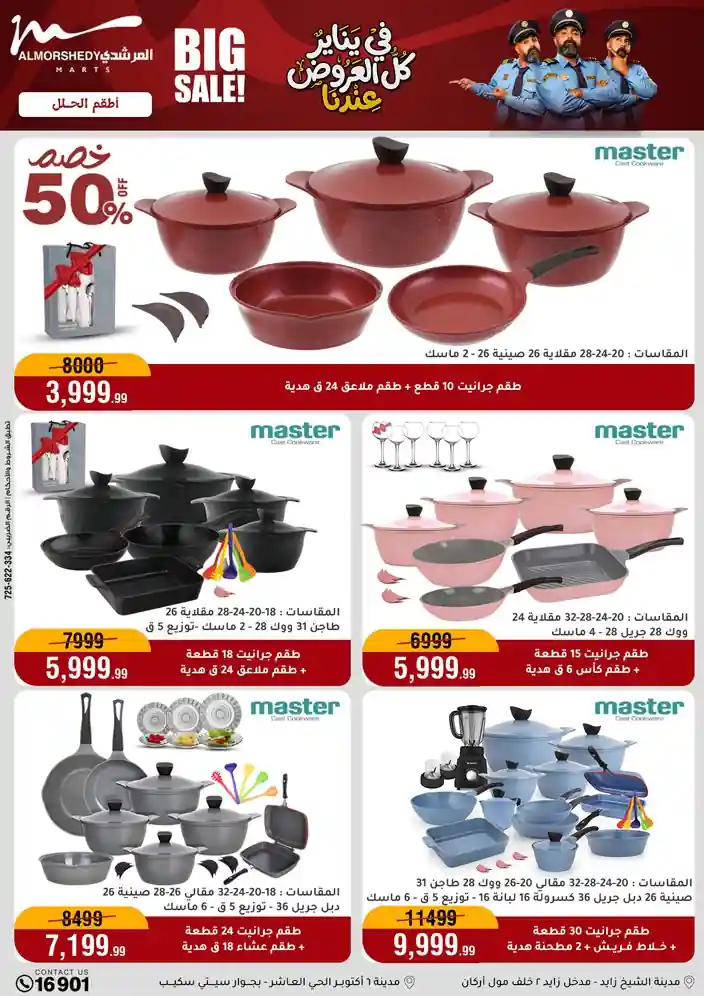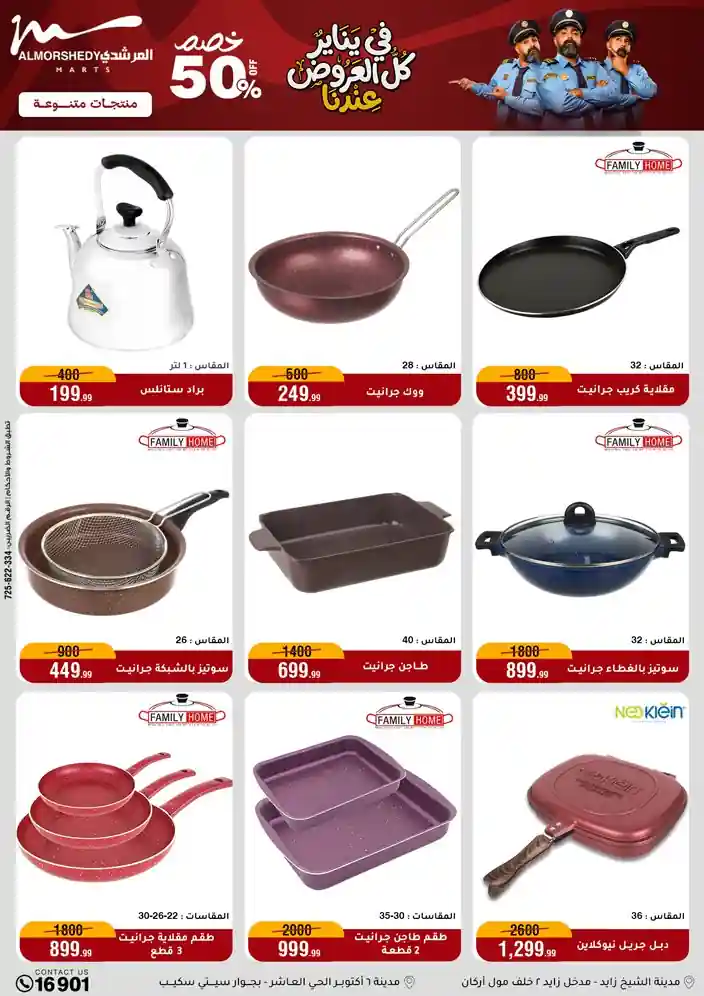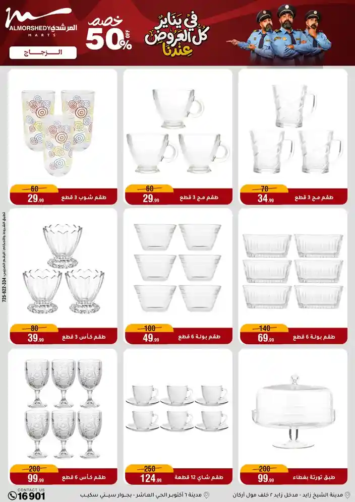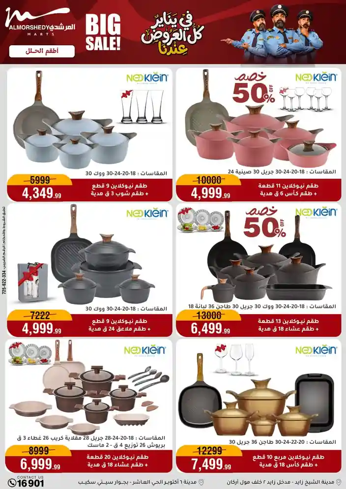 عروض جديدة من أسواق المرشدي مع اكبر مهرجان للتخفيضات في مصر خصومات حتى 70% وقسط براحتك بدون فوائد بأسعار العروض المخفضة على 12 شهر لحاملي بطاقة ائتمان CIB أو قسط براحتك مع VALU بدون مقدم حتى 60 شهر أو بدون مقدم وبدون فوائد مع نظام هاتريك وكمان النقل مجاني للقاهرة والجيزة والقليوبية على قسم الأجهزة الكهربائية والموبيليا والمراتب ( تطبق شروط المكان ) خصومات على جميع الأقسام أدوات منزلية – اجهزة كهربائية – مفروشات – موبيليا – نجف – سجاد – مراتب – ملابس رجالي وحريمي وأطفالي ومستلزمات ولعب الأطفال وجاليري وأقسام تانية كتير استمتع بالتسوق في أسواق المرشدي مع أكتر من 12 قسم و أكثر من 10,000 منتج يعني كل اللي بتحلم بيه عند المرشدي هتلاقيه