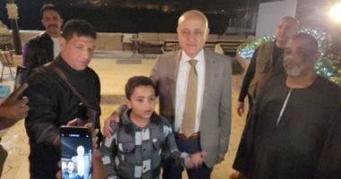 التقي المهندس عبد المطلب ممدوح عمارة، محافظ الأقصر، مساء اليوم الأربعاء، مع طفل قدم قصيدة عن القومى لمحافظة الأقصر والحضارة الفرعونية؛ وذلك خلال جولاته على كورنيش النيل في ليلة رأس السنة الميلادية.