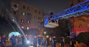 12-ابعاد المواطنين المحتجزين الى سطح العقار لحين القيام بإنزالهم عبر السلم الهيدروليكى