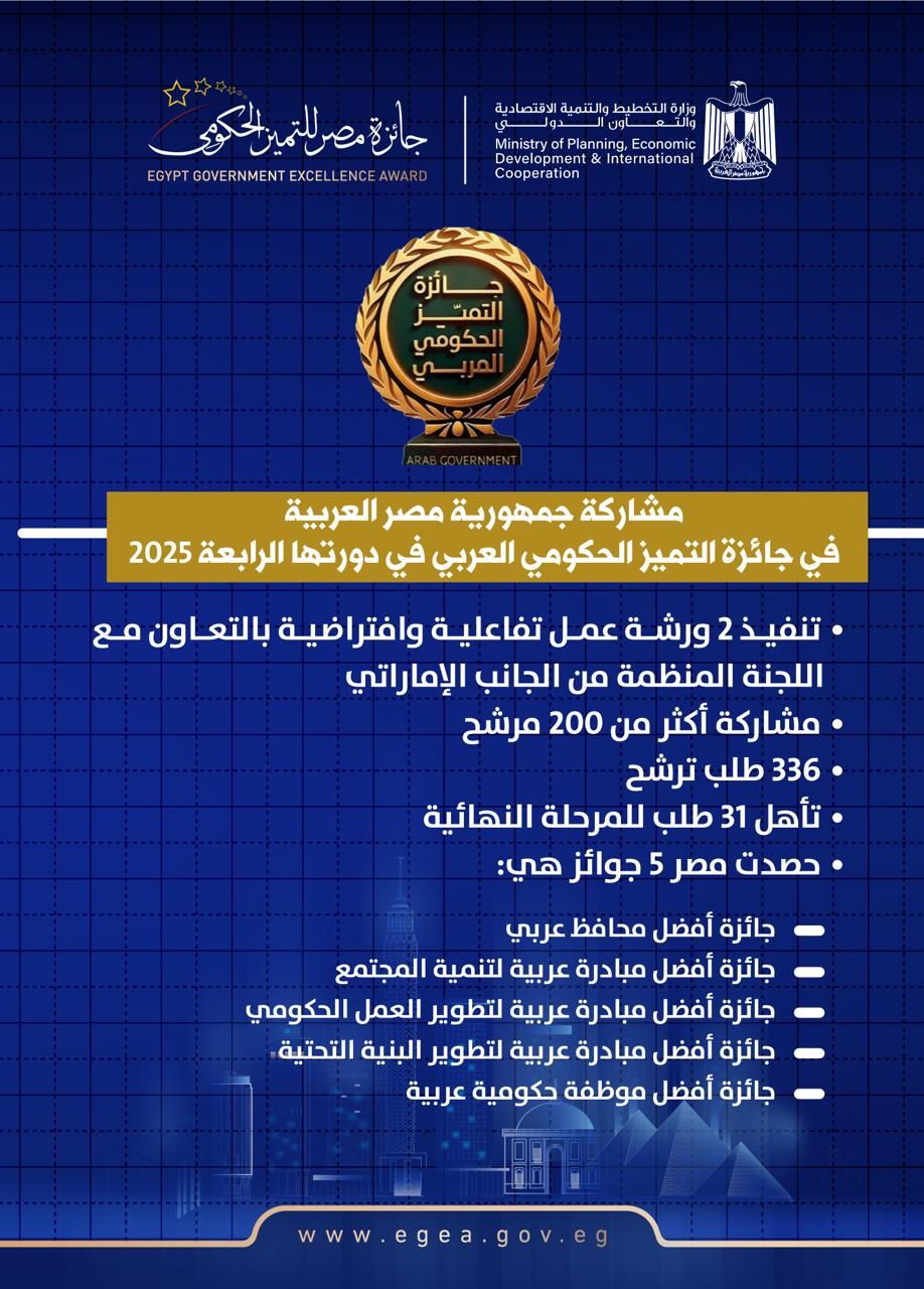 ثالثاً: مشاركة جمهورية مصر العربية في جائزة التميز الحكومي العربي في دورتها الرابعة 2025: