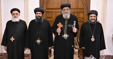الخميس، 01 يناير 2026 03:49 ماستقبل قداسة البابا تواضروس الثاني، بابا الإسكندرية وبطريرك الكرازة المرقسية، اليوم الخميس، فى المقر البابوي بالإسكندرية، أسقفي العموم المشرفين على القطاعات الرعوية بالإسكندرية، صاحبى النيافة الأنبا باڤلى، أسقف عام قطاع المنتزه، والأنبا هرمينا، أسقف عام قطاع شرقى الإسكندرية، إلى جانب الأب القمص أبرآم إميل، وكيل عام البطريركية بالإسكندرية.