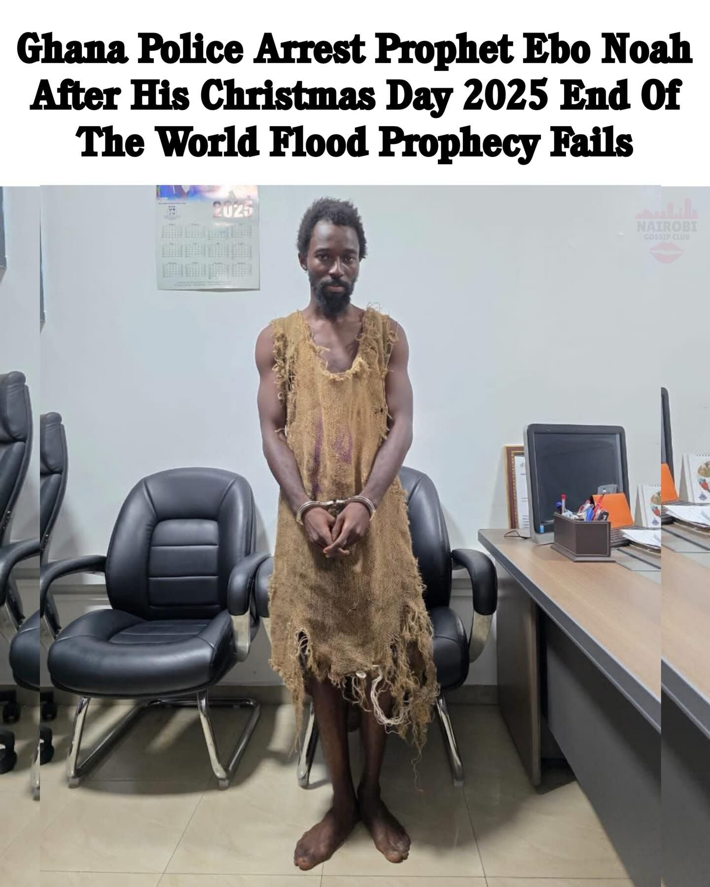 ألقت السلطات فى غانا القبض على مدعى النبوة المعروف باسم إيبو نوح، بعد دعوته إلى بناء سفينة للنجاة من طوفان زعم أنه سيقع ليلة عيد الميلاد فى 25 ديسمبر الماضى.