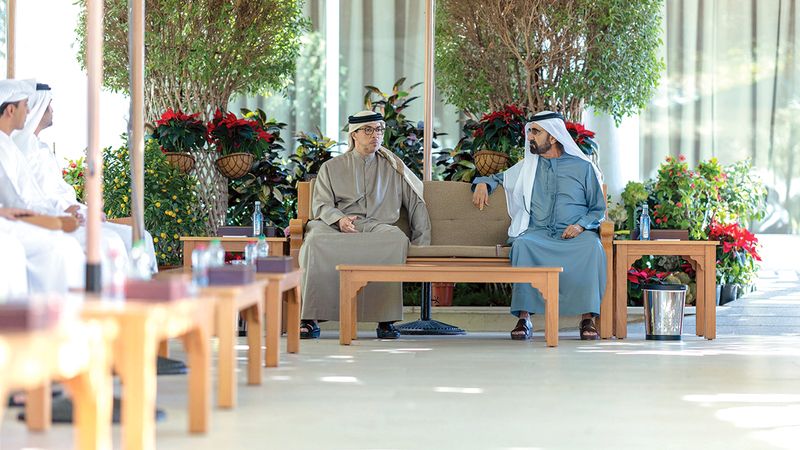التقى صاحب السمو الشيخ محمد بن راشد آل مكتوم، نائب رئيس الدولة رئيس مجلس الوزراء حاكم دبي، رعاه الله، أمس، في استراحة المرموم بدبي، سمو الشيخ منصور بن زايد آل نهيان، نائب رئيس الدولة نائب رئيس مجلس الوزراء رئيس ديوان الرئاسة، بحضور سمو الشيخ مكتوم بن محمد بن راشد آل مكتوم، النائب الأول لحاكم دبي نائب رئيس مجلس الوزراء وزير المالية.