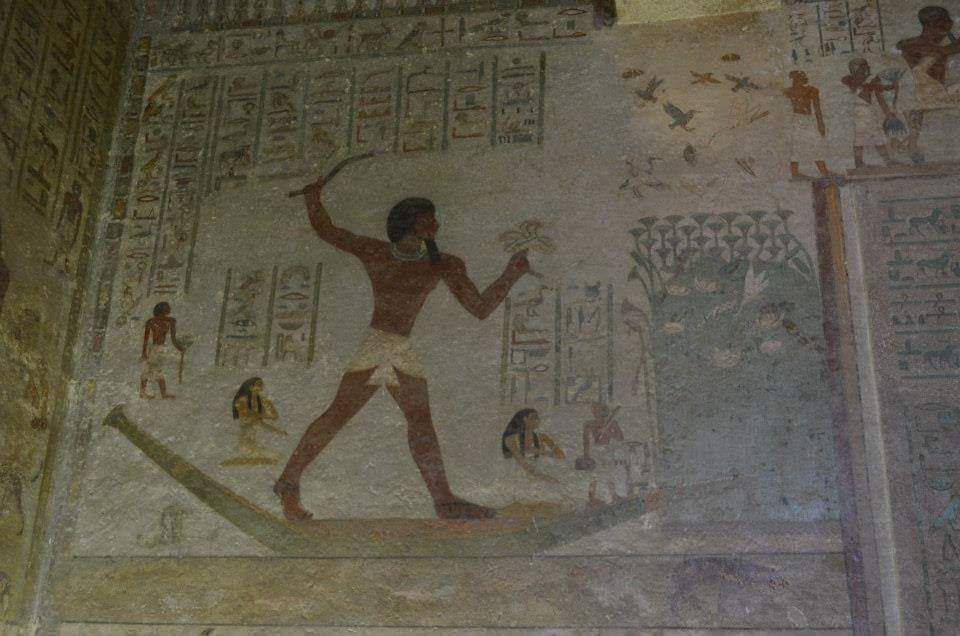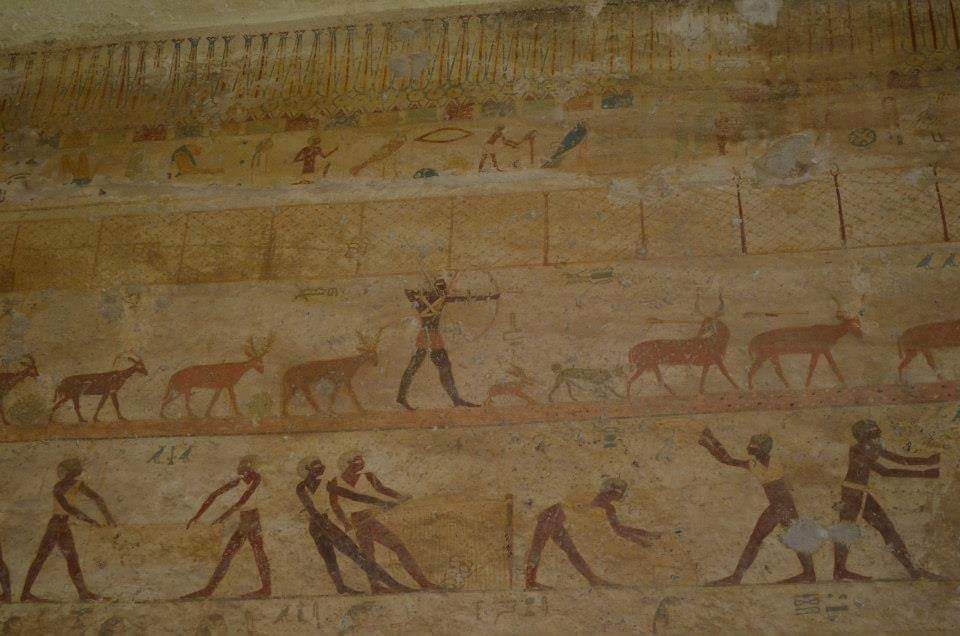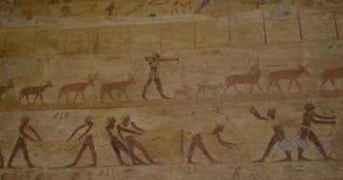 وضاف الأزهرى قائلا أن هناك ايضا مقبرة احموزا الذى كان يشغل منصب المشرف على صالة القضاء، علاوة على منصبه كحامل المروحة على يمين الملك وأهم المناظر فى تلك المقبرة الملك والملكة فى العجلة الحربية وصفين من الجنود والأسرة أمام مائدة القرابين.