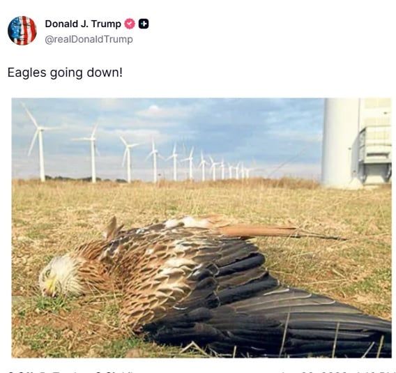 شن الرئيس الأمريكى دونالد ترامب، اليوم الجمعة، هجومًا جديدًا على طاقة الرياح عبر منصته على وسائل التواصل الاجتماعى، مؤكدًا أن توربينات الرياح "تقتل ملايين الطيور"، ونشر ترامب على منصة «تروث سوشيال» صورة لتوربين رياح مع طيور تحلق بالقرب منه، وكتب تعليقًا مقتضبًا وحادًا: "تقتل ملايين الطيور!"، في إشارة إلى الأضرار البيئية التي يرى أنها ناجمة عن مشاريع طاقة الرياح.