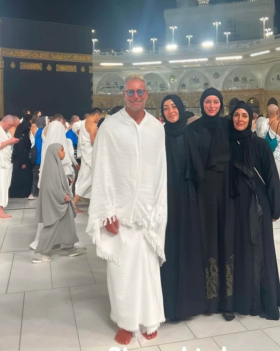 تامر هجرس وزوجته وبناته يؤدون مناسك العمرة