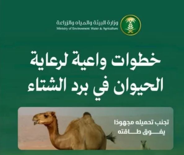 دعت وزارة البيئة والمياه والزراعة، جميع فئات المجتمع، إلى أهمية تعزيز الوعي بالممارسات المسؤولة تجاه الحيوانات خلال فصل الشتاء، والاعتناء بها وحمايتها؛ وضرورة مساعدتها عبر توفير أماكن دافئة، وتقديم الماء والطعام لها.
