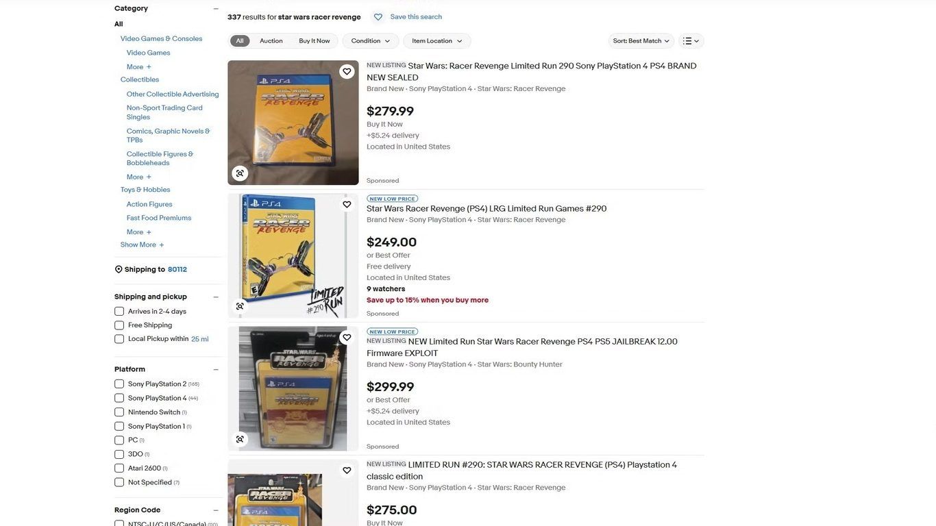 رغم أن Star Wars Racer Revenge لم تكن من الألعاب مرتفعة السعر على PS2 عند إصدارها الأول، فإن نسخة PS4 الصادرة عبر Limited Run Games شهدت عودة غير متوقعة وقيمة عالية. وتشير التقارير إلى أن النسخ المادية من PS4 يمكن استخدامها على PS5 لكسر حماية النظام، وهي عملية تتطلب وجود قرص اللعبة. ومع انتشار خبر كسر الحماية عبر وسائل التواصل الاجتماعي، بدأت أسعار Star Wars Racer Revenge في الارتفاع الحاد على متاجر الطرف الثالث مثل eBay. وحتى وقت كتابة التقرير، تتراوح أسعار النسخ بين مئتين وخمسين وثلاثمئة دولار أمريكي في المتوسط. ويعود ذلك إلى إمكانية كسر حماية PS5 من جهة، وإلى محدودية عدد النسخ المطبوعة من جهة أخرى، حيث لم تُنتج سوى ثمانية آلاف وخمسمئة نسخة في عام 2019. وبذلك، تقترب تكلفة كسر حماية PS5 من نصف سعر الجهاز نفسه.