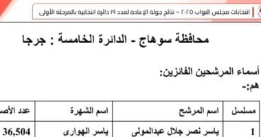 نتيجة الانتخابات لمجلس النواب بالدائرة الخامسة سوهاج