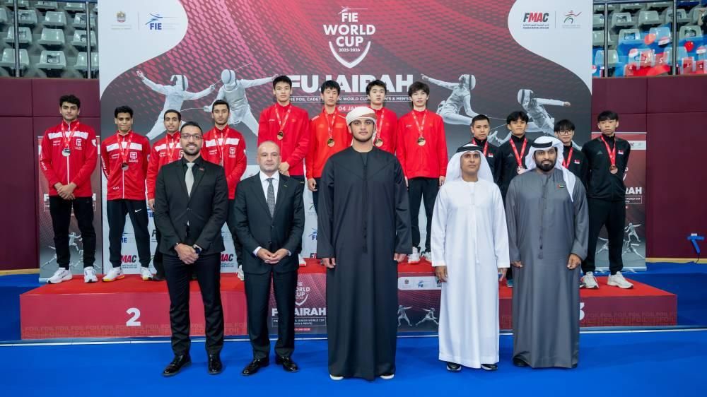 شهد الشيخ حمد بن محمد بن حمد الشرقي نجل سموّ ولي عهد الفجيرة، ختام منافسات بطولة العالم للمبارزة - سلاح الفلورية، التي أقيمت في مجمع زايد الرياضي بالفجيرة.