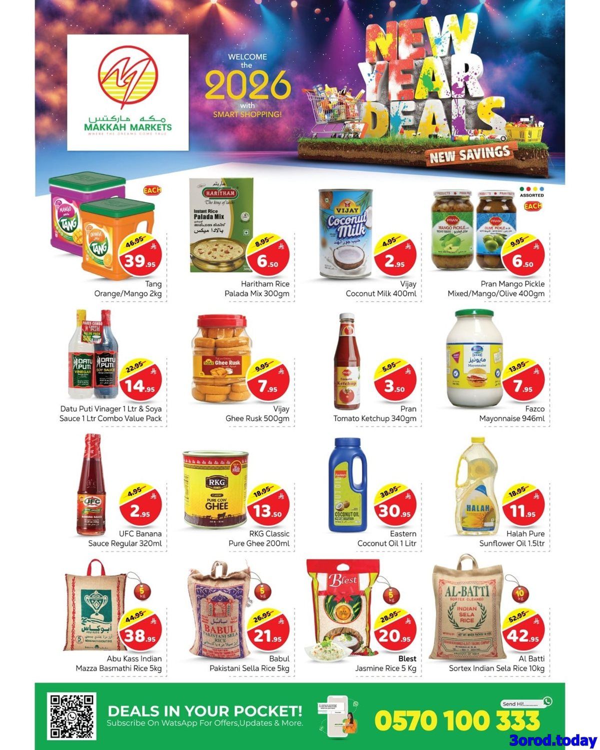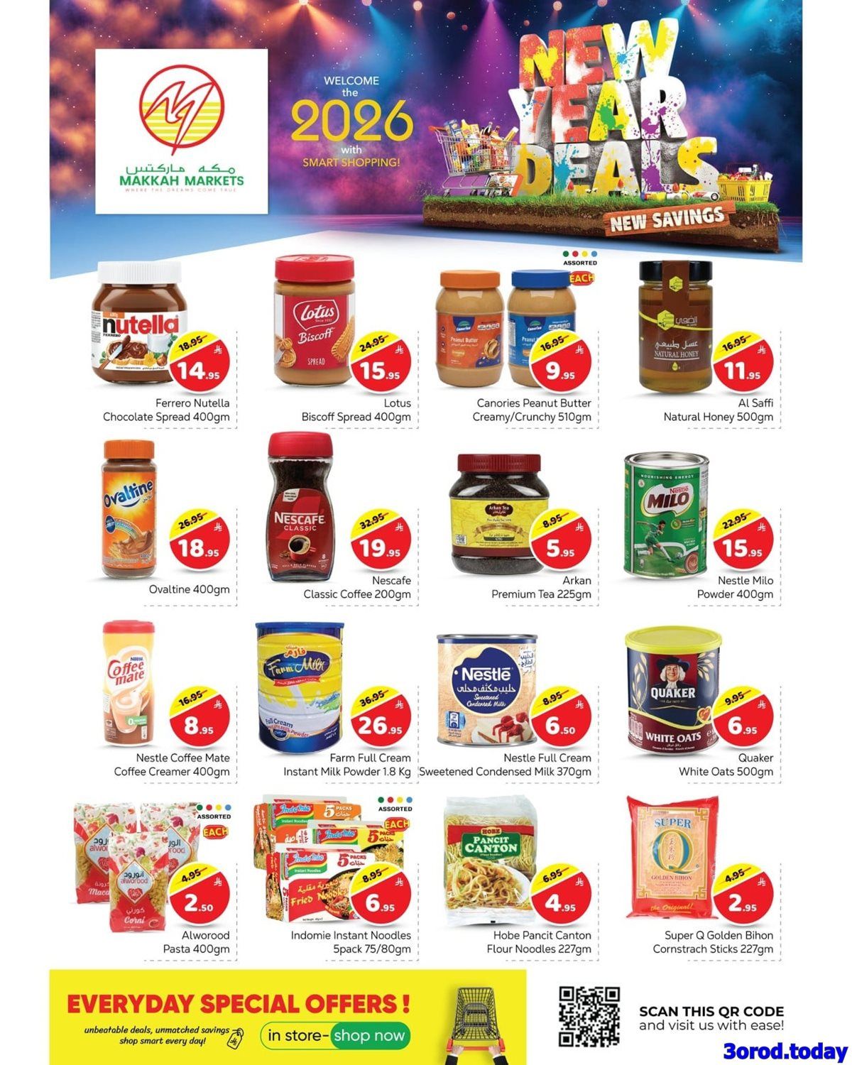 مكة ماركت الاسبوعية و التي تستمر حتي السبت 10-1-2026 الموافق 21 رجب 1447هـ وبمناسبة العام الجديد بتقدم تشكيلة من منتجات متنوعة منها غذائية و منها ادوات المطبخ و مستلزمات تحضير الطعام و في عروض حصرية تتممتع بخصومات مميزة في الاسعار ابقوا معنا ولا تفوتو الفرصة
