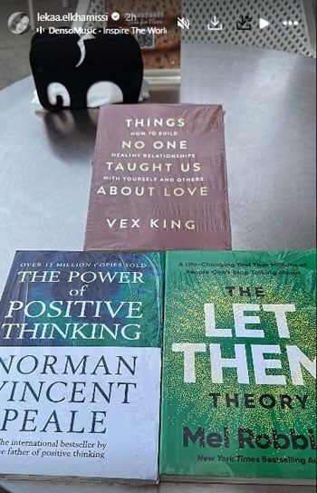 كشفت الفنانة لقاء الخميسي عن اول تعليق لها بعد مزاعم الفنانة ايمان الزيدي طلاقها من الكابتن محمد عبد المنصف زوج الأولى، حيث شاركت لقاء الخميسي صور لثلاثة كتب جاء عنوان الكتاب الأول بعنوان أشياء لم يعلمنا أحدها عن الحب: كيفية بناء علاقات صحية مع نفسك ومع الآخرين، والكتاب الثاني بعنوان قوة التفكير الإيجابي، والكتاب الثالث جاء بعنوان كتاب نظرية دعهم وشأنهم.
