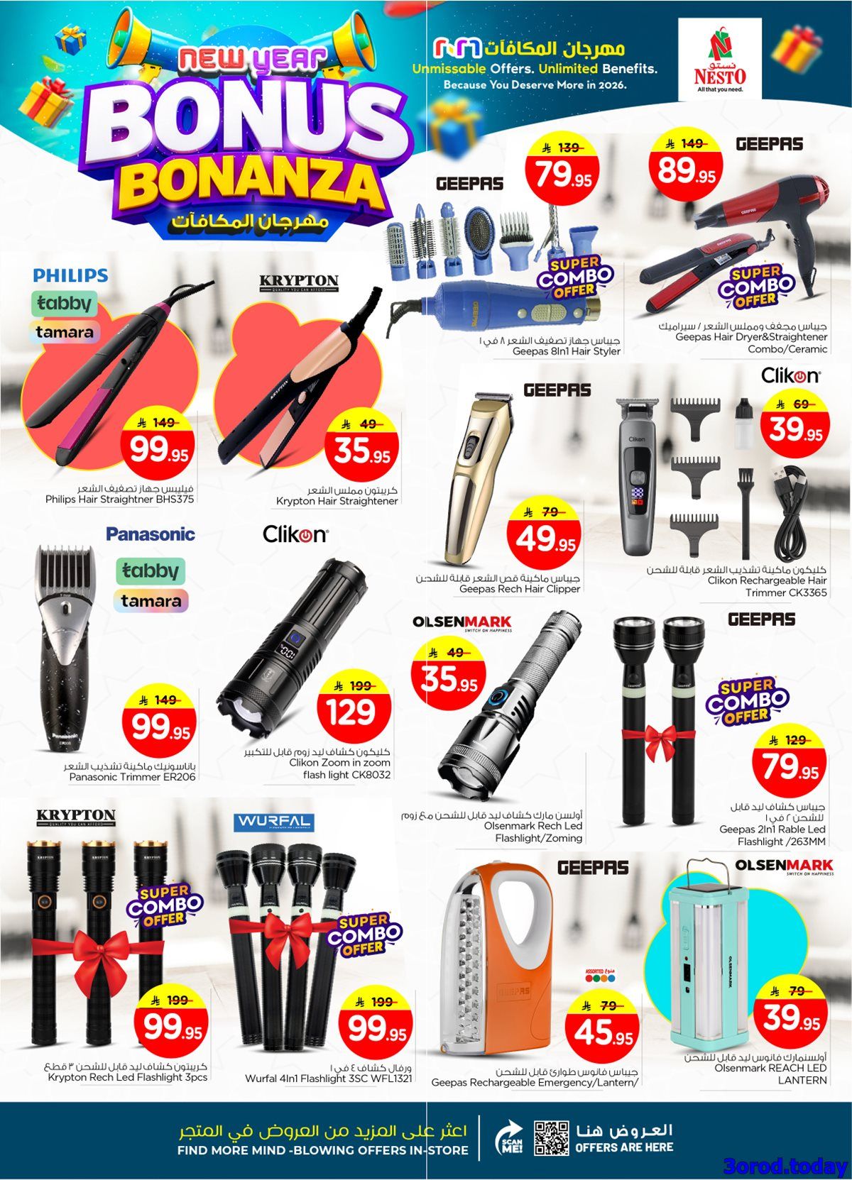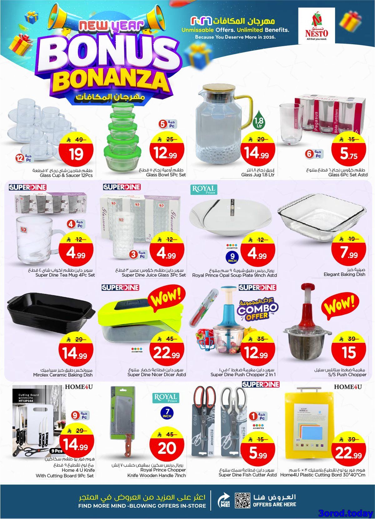 تحتوي عروض نستو القصيم اليوم علي : شاي الكبوس – حليب مبخر بوني – قشطة لونا – حليب مكثف محلى لونا – شوفان كويكر – سبريد نوتيلا بالبندق – زبدة فول سوداني نيزلاين كريمي – زبدة فول سوداني نيزلاين كرانشي – عسل ساري – سكر بني السورة – كورن فليكس كيلوجز – كورن فليكس نسكويك – دجاج فقيه مجمد – حليب طويل الأجل