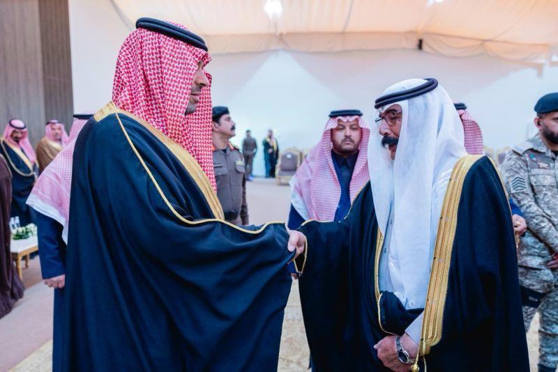 استقبل صاحبُ السمو الملكي الأمير فيصل بن خالد بن سلطان بن عبدالعزيز أميرُ منطقةِ الحدود الشمالية، في محافظة رفحاء اليوم، المسؤولين ومديري الجهات الحكومية من مدنيين وعسكريين، وشيوخ القبائل، وجموع المواطنين، الذين قدموا للسلام على سموّه خلال زيارته التفقدية للمحافظة.