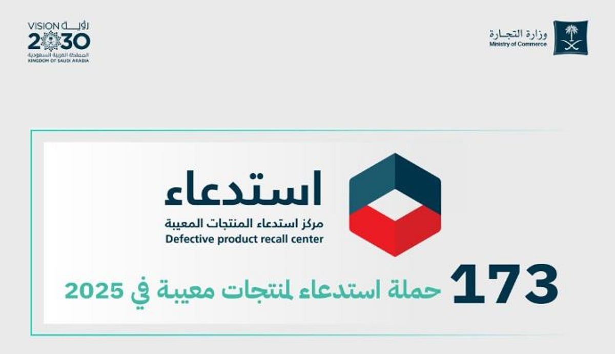 أعلنت وزارة التجارة تنفيذ 173 حملة استدعاء لمنتجات معيبة خلال عام 2025م، وذلك عبر مركز استدعاء المنتجات المعيبة، في إطار جهودها المستمرة لتعزيز سلامة المستهلك وحمايته من المخاطر المحتملة
