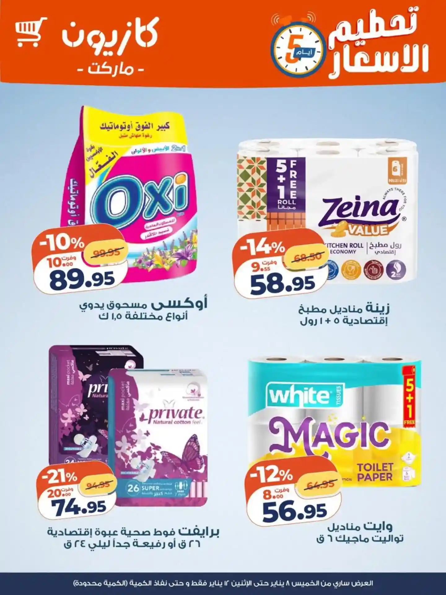 العروض الجديدة من كازيون تسرى من 8 يناير حتى 12 يناير 2026 تحطيم الاسعار فى جميع فروع كازيون