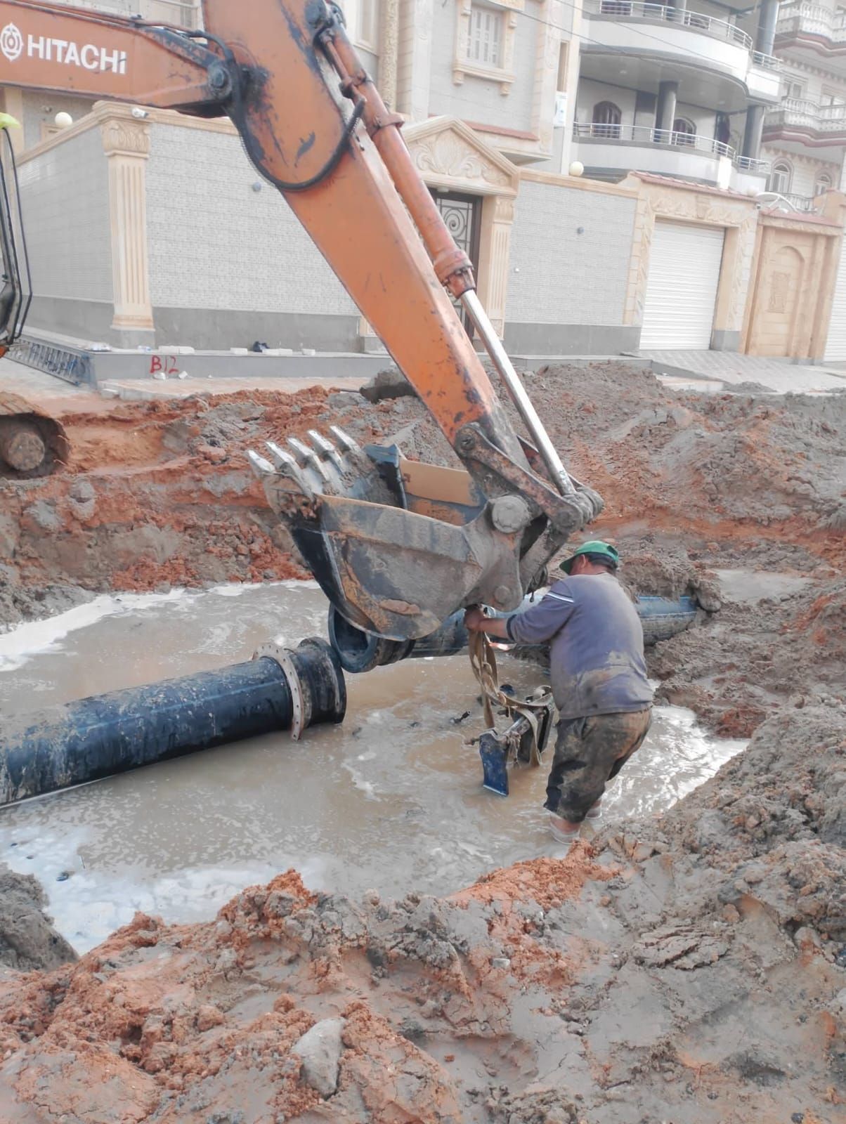 إصلاح الكسر المفاجئ بخط طرد محطة الرفع الرئيسية ببلطيم