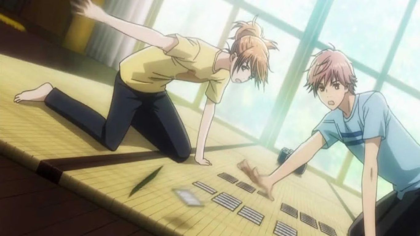 هو مسلسل أنمي من ثلاث مواسم، تدور أحداثه حول Chihayaالتي عاشت طوال حياتها على الهامش. تجد شغفها في لعبة الكاروتا اليابانية ، وتقرر أن تصبح أفضل لاعبة في اليابان بأكملها. في المدرسة الثانوية، تشكل ناديًا مع صديق طفولتها وتأمل أن تتحدى ذات يوم مع الفتى الذي أثار اهتمامها باللعبة في المقام الأول.