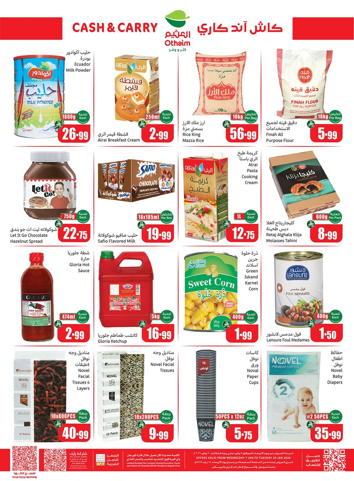 عروض العثيم كاش آند كاري من 8 حتى 20 يناير 2026 افضل المنتجات الخاصة ضمن اسواق العثيم تتوافر العروض بفرع كاش آند كاري فقط – طريق خريص حي النسيم لا تفوتوا التوفير المميزه على الارز و السكر و الطحين و الكتشب و الكثير من المواد الغذائية الاخرة و اساسيات المنزل بأفضل الاسعار.