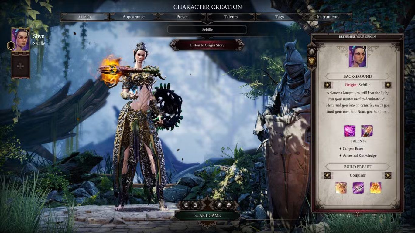بنية المستحضر لشخصية Sebille في لعبة Divinity Original Sin 2