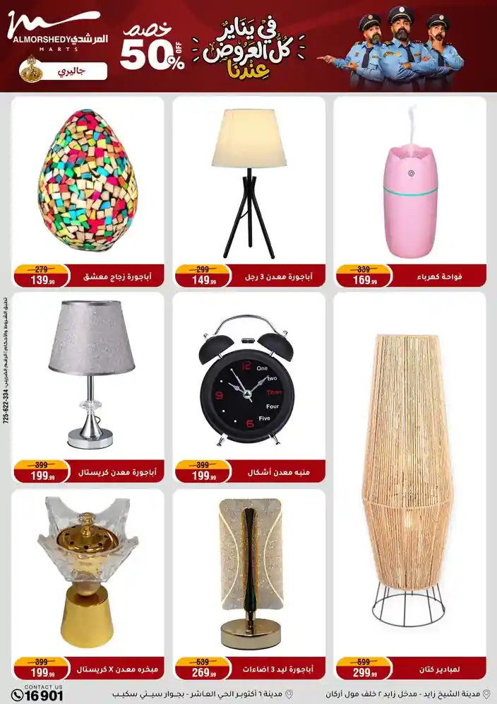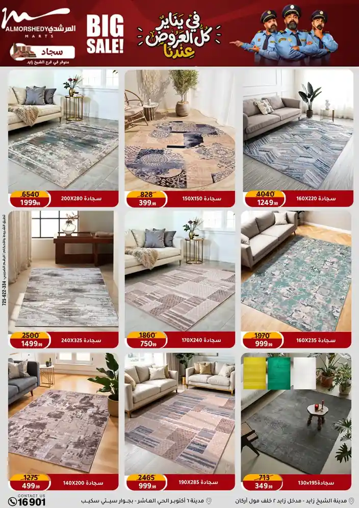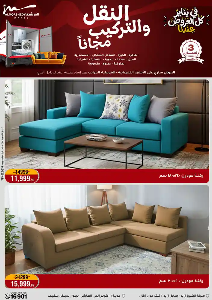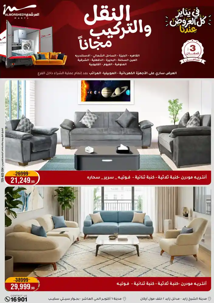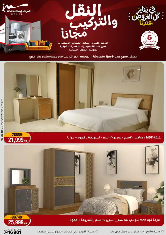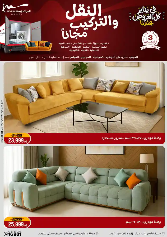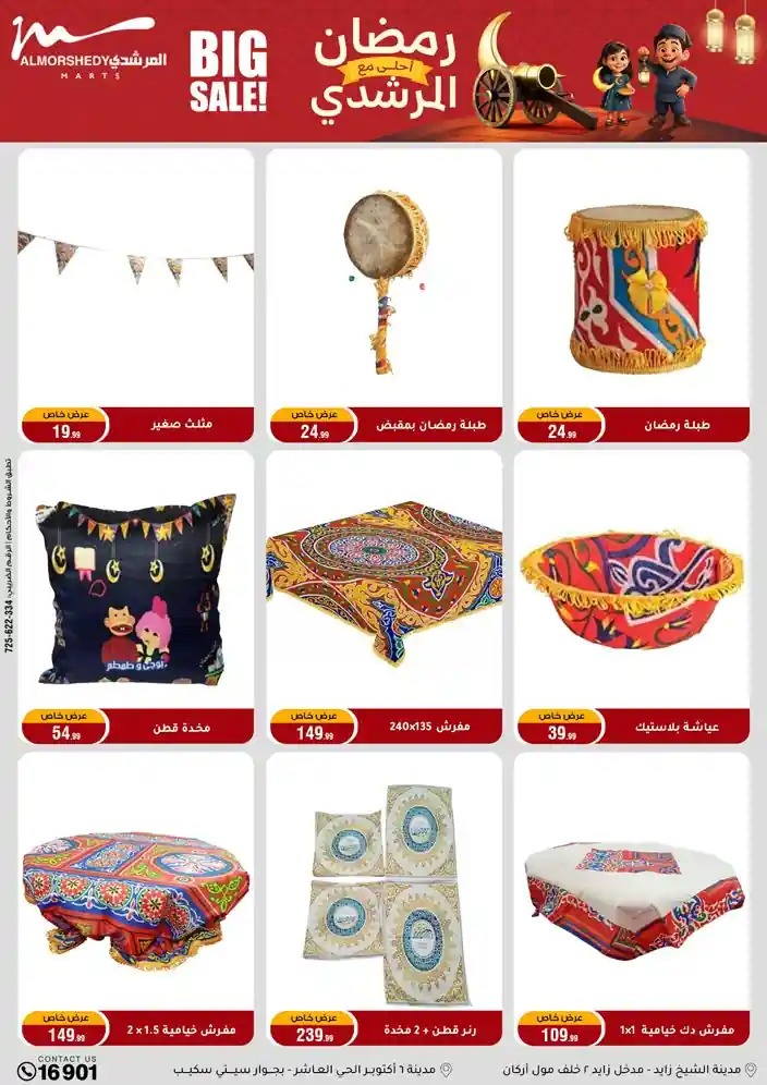 عروض جديدة من أسواق المرشدي مع اكبر مهرجان للتخفيضات في مصر خصومات حتى 70% وقسط براحتك بدون فوائد بأسعار العروض المخفضة على 12 شهر لحاملي بطاقة ائتمان CIB أو قسط براحتك مع VALU بدون مقدم حتى 60 شهر أو بدون مقدم وبدون فوائد مع نظام هاتريك وكمان النقل مجاني للقاهرة والجيزة والقليوبية على قسم الأجهزة الكهربائية والموبيليا والمراتب ( تطبق شروط المكان ) خصومات على جميع الأقسام أدوات منزلية – اجهزة كهربائية – مفروشات – موبيليا – نجف – سجاد – مراتب – ملابس رجالي وحريمي وأطفالي ومستلزمات ولعب الأطفال وجاليري وأقسام تانية كتير استمتع بالتسوق في أسواق المرشدي مع أكتر من 12 قسم و أكثر من 10,000 منتج يعني كل اللي بتحلم بيه عند المرشدي هتلاقيه