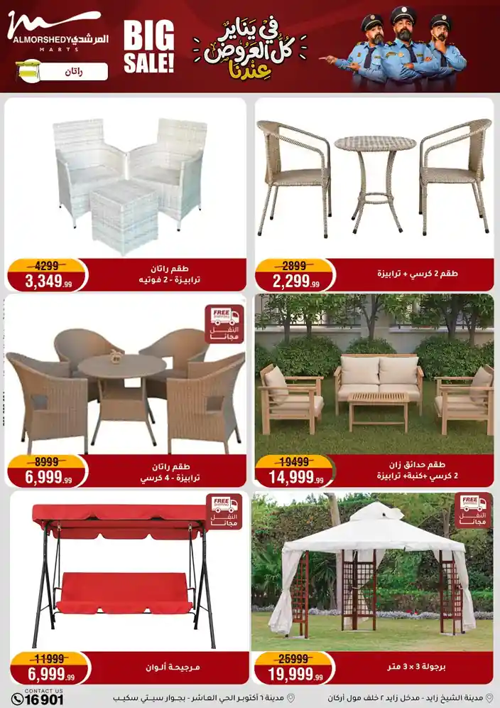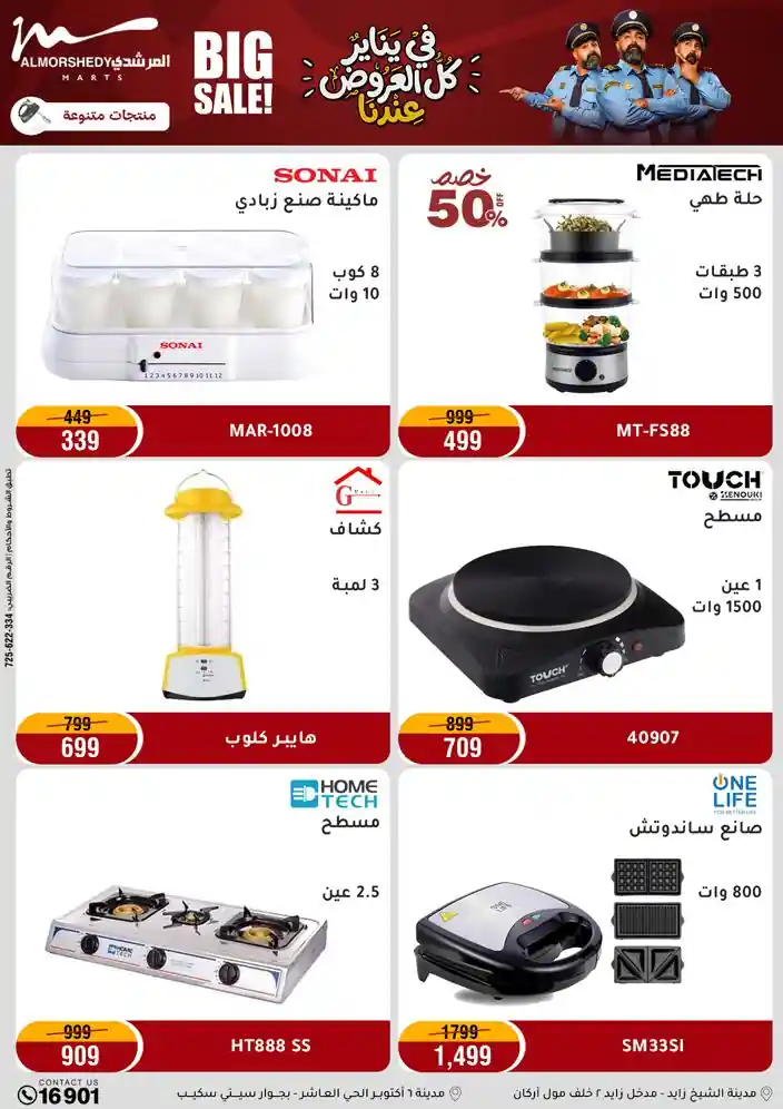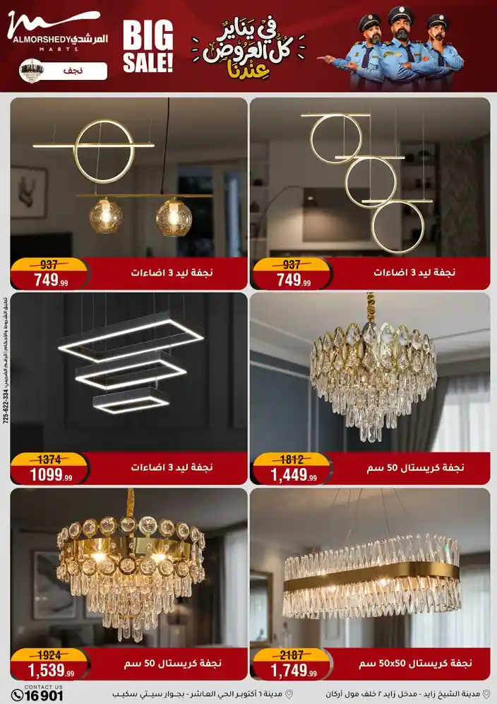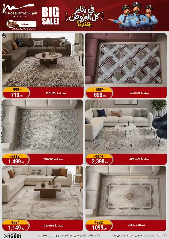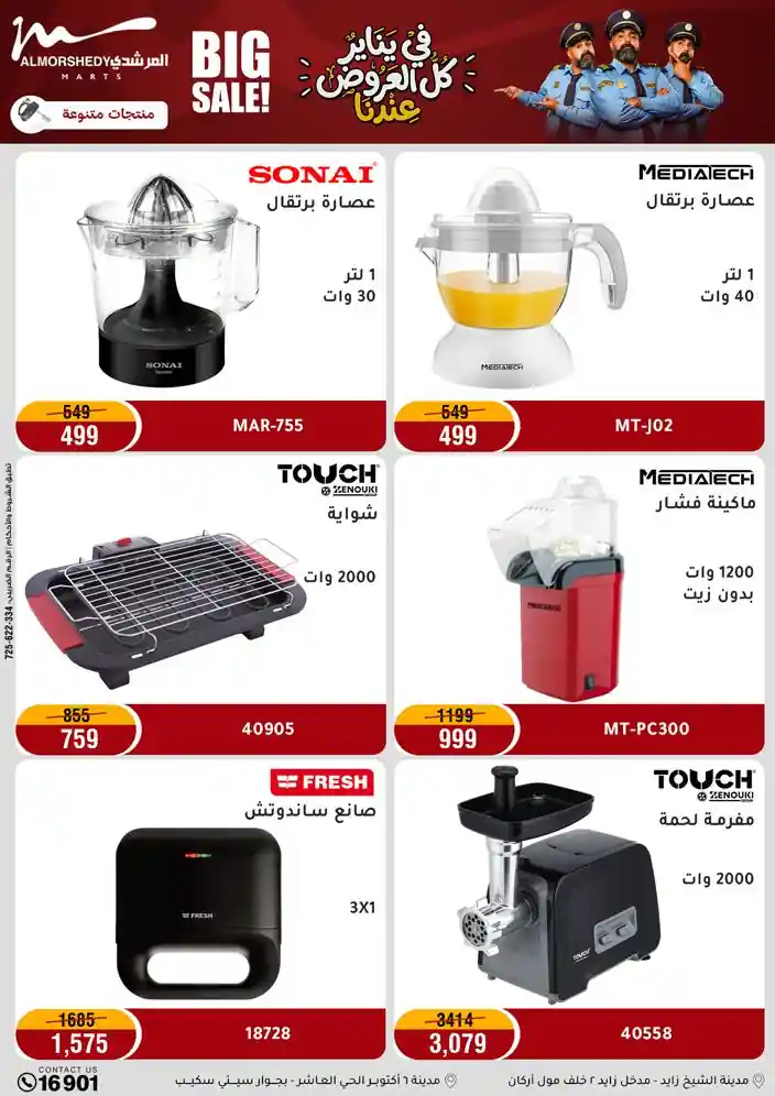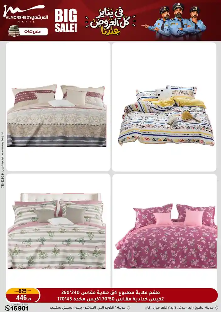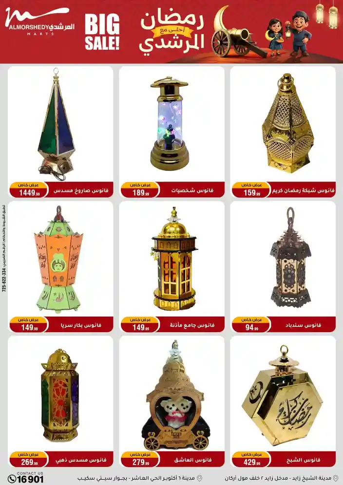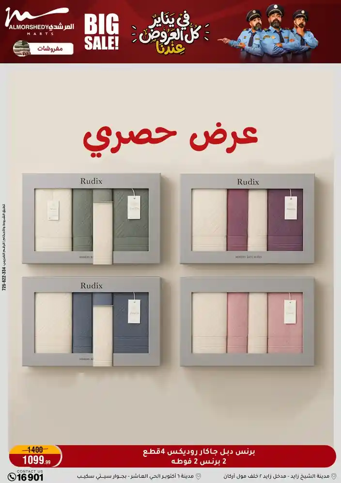 عروض جديدة من أسواق المرشدي مع اكبر مهرجان للتخفيضات في مصر خصومات حتى 70% وقسط براحتك بدون فوائد بأسعار العروض المخفضة على 12 شهر لحاملي بطاقة ائتمان CIB أو قسط براحتك مع VALU بدون مقدم حتى 60 شهر أو بدون مقدم وبدون فوائد مع نظام هاتريك وكمان النقل مجاني للقاهرة والجيزة والقليوبية على قسم الأجهزة الكهربائية والموبيليا والمراتب ( تطبق شروط المكان ) خصومات على جميع الأقسام أدوات منزلية – اجهزة كهربائية – مفروشات – موبيليا – نجف – سجاد – مراتب – ملابس رجالي وحريمي وأطفالي ومستلزمات ولعب الأطفال وجاليري وأقسام تانية كتير استمتع بالتسوق في أسواق المرشدي مع أكتر من 12 قسم و أكثر من 10,000 منتج يعني كل اللي بتحلم بيه عند المرشدي هتلاقيه