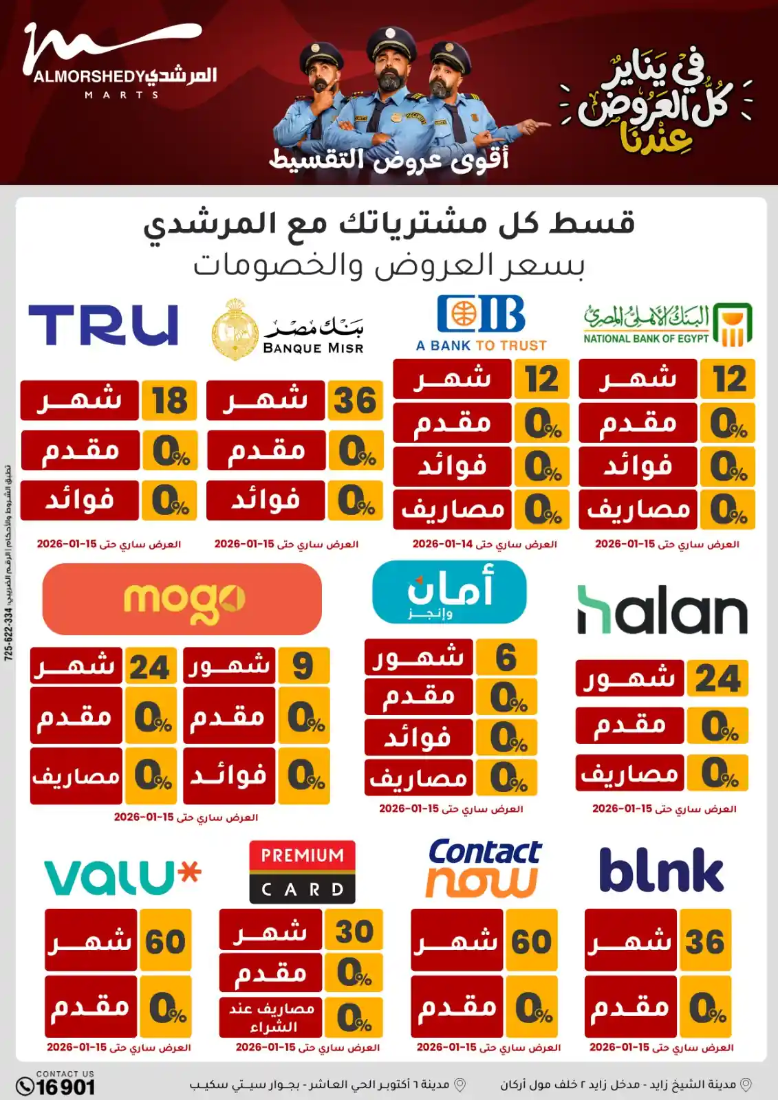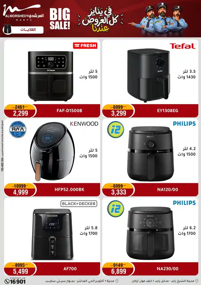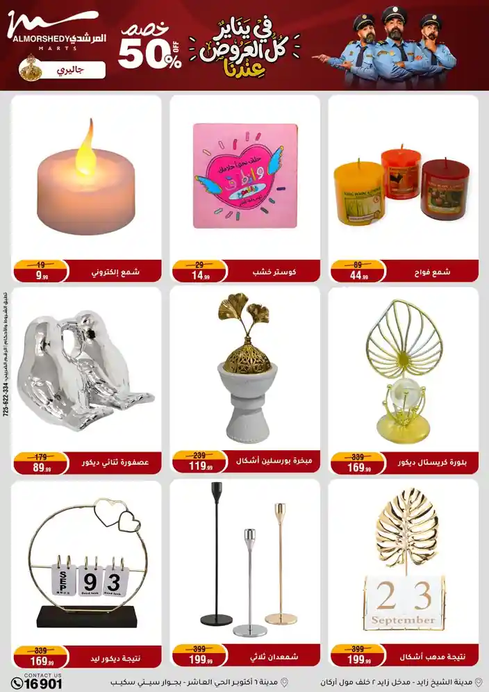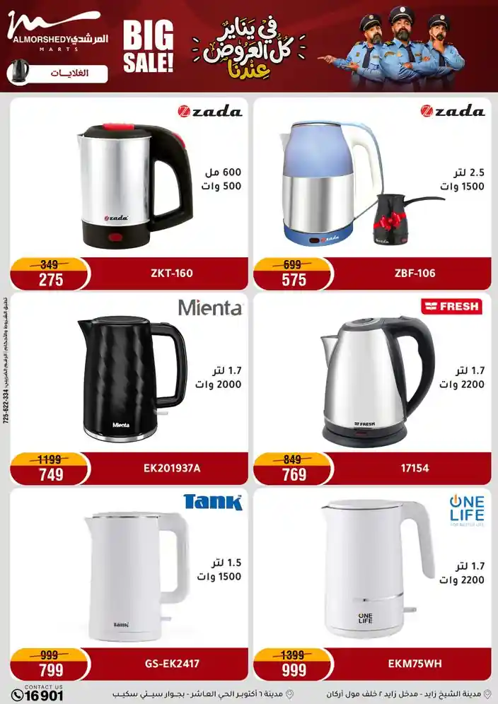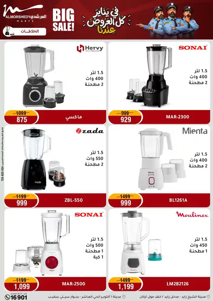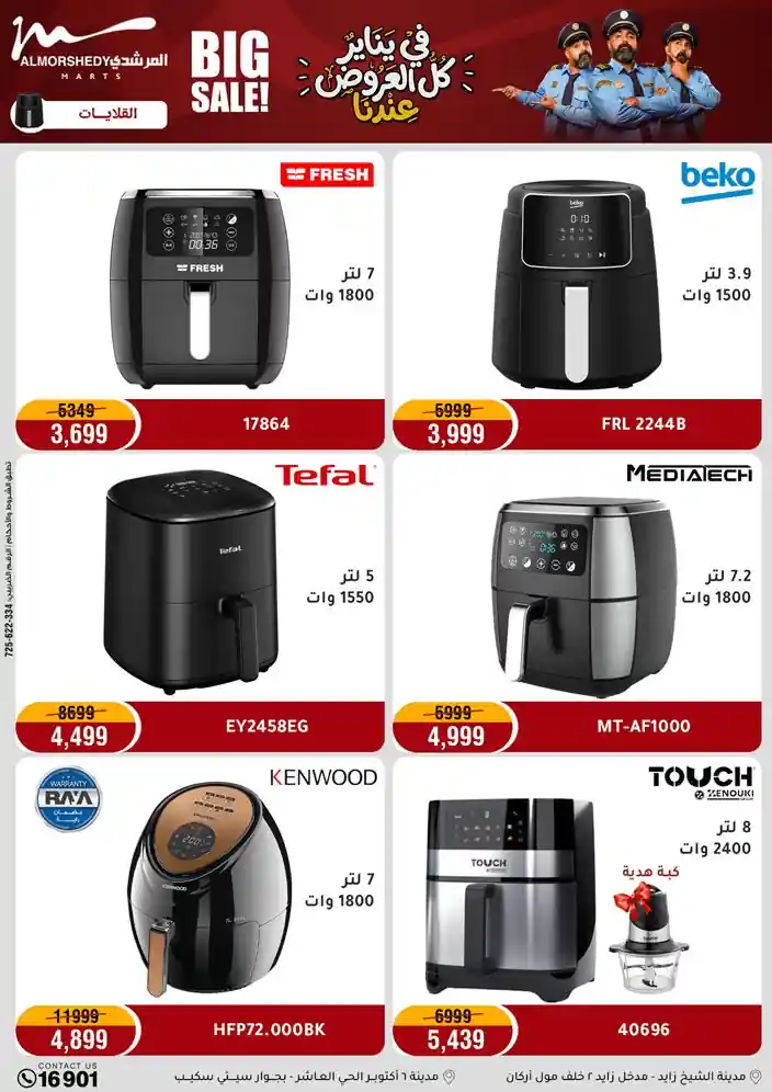 عروض جديدة من أسواق المرشدي مع اكبر مهرجان للتخفيضات في مصر خصومات حتى 70% وقسط براحتك بدون فوائد بأسعار العروض المخفضة على 12 شهر لحاملي بطاقة ائتمان CIB أو قسط براحتك مع VALU بدون مقدم حتى 60 شهر أو بدون مقدم وبدون فوائد مع نظام هاتريك وكمان النقل مجاني للقاهرة والجيزة والقليوبية على قسم الأجهزة الكهربائية والموبيليا والمراتب ( تطبق شروط المكان ) خصومات على جميع الأقسام أدوات منزلية – اجهزة كهربائية – مفروشات – موبيليا – نجف – سجاد – مراتب – ملابس رجالي وحريمي وأطفالي ومستلزمات ولعب الأطفال وجاليري وأقسام تانية كتير استمتع بالتسوق في أسواق المرشدي مع أكتر من 12 قسم و أكثر من 10,000 منتج يعني كل اللي بتحلم بيه عند المرشدي هتلاقيه