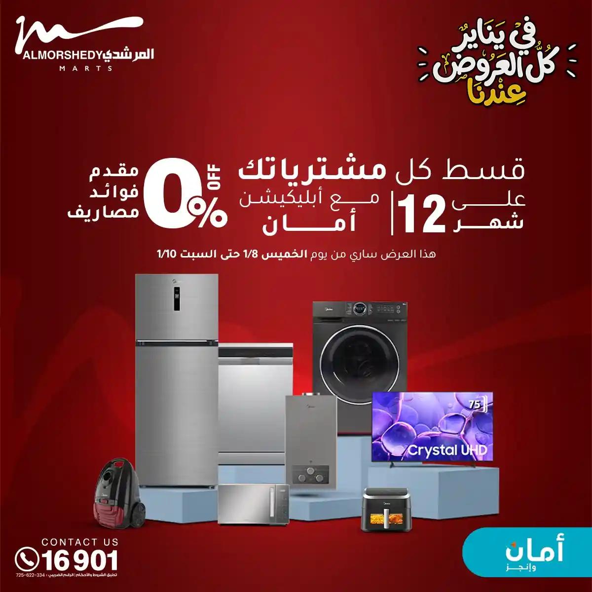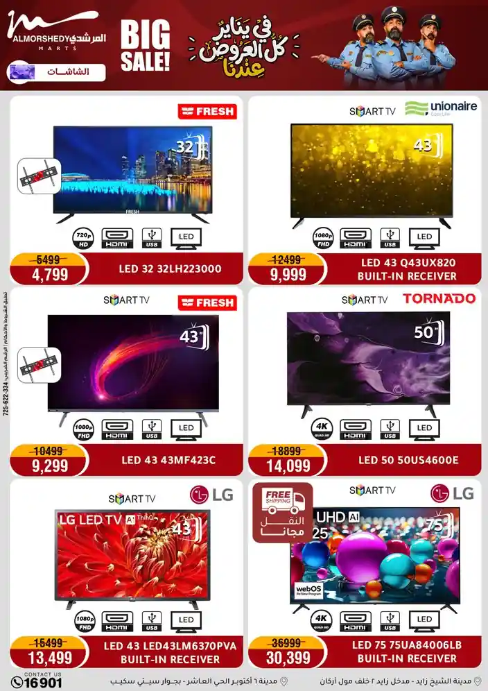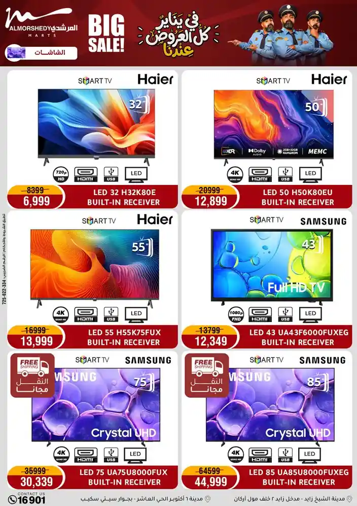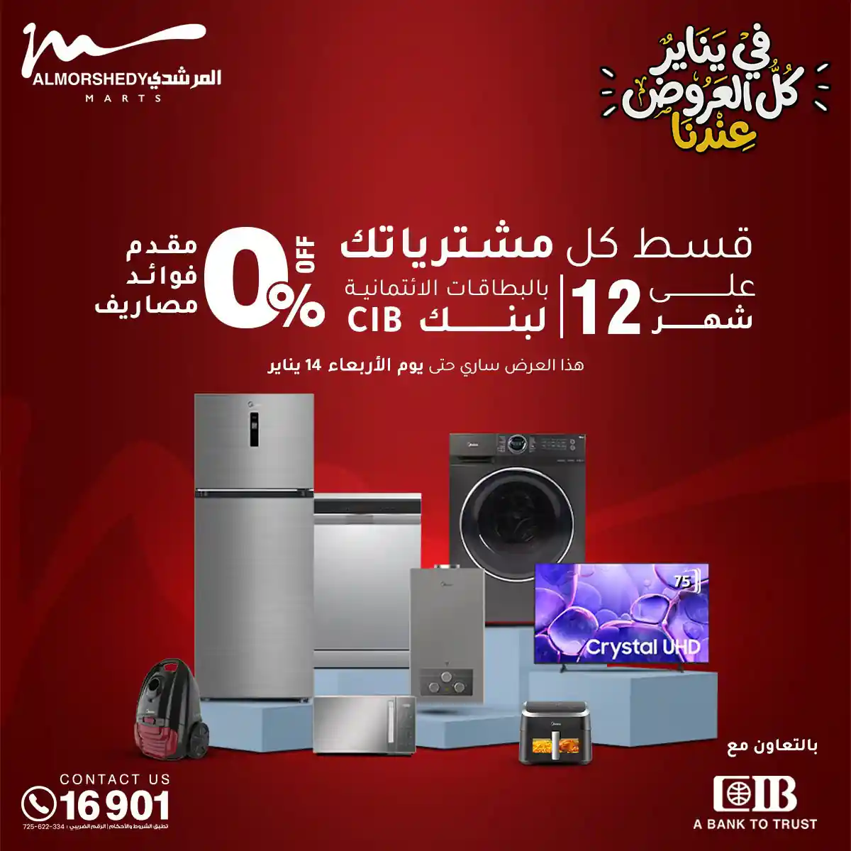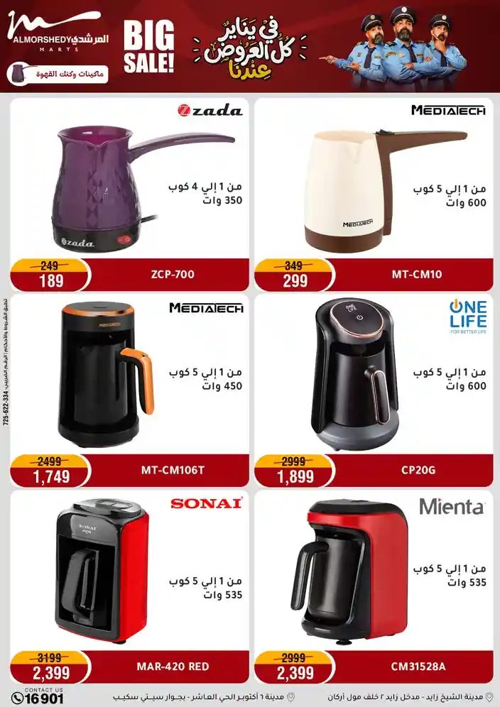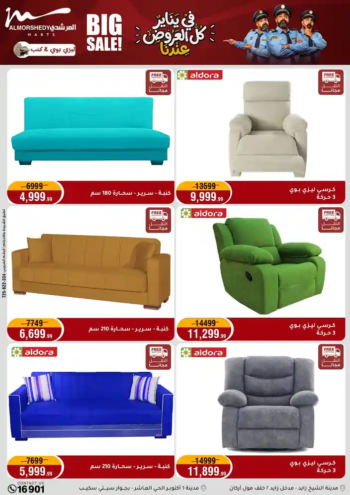 عروض جديدة من أسواق المرشدي مع اكبر مهرجان للتخفيضات في مصر خصومات حتى 70% وقسط براحتك بدون فوائد بأسعار العروض المخفضة على 12 شهر لحاملي بطاقة ائتمان CIB أو قسط براحتك مع VALU بدون مقدم حتى 60 شهر أو بدون مقدم وبدون فوائد مع نظام هاتريك وكمان النقل مجاني للقاهرة والجيزة والقليوبية على قسم الأجهزة الكهربائية والموبيليا والمراتب ( تطبق شروط المكان ) خصومات على جميع الأقسام أدوات منزلية – اجهزة كهربائية – مفروشات – موبيليا – نجف – سجاد – مراتب – ملابس رجالي وحريمي وأطفالي ومستلزمات ولعب الأطفال وجاليري وأقسام تانية كتير استمتع بالتسوق في أسواق المرشدي مع أكتر من 12 قسم و أكثر من 10,000 منتج يعني كل اللي بتحلم بيه عند المرشدي هتلاقيه