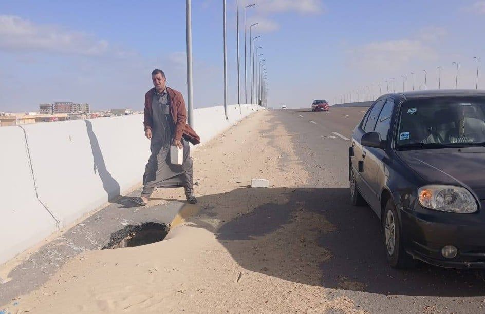 وكان أحد الأشخاص رصد الحفرة على جانب الطريق أعلى كوبري رأس الحكمة، في الاتجاه من اسكندرية إلى مطروح ، ونشر صورتها على مواقع التواصل الاجتماعي، ومطالبة المسئولين بسرعة التحرك، حرصاً على سلامة وأرواح المسافرين.