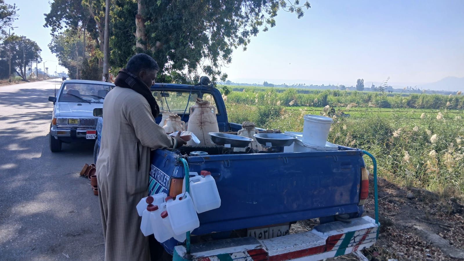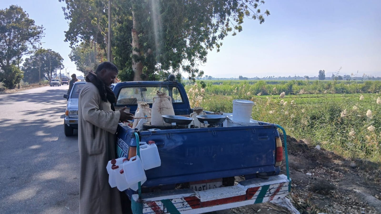 ومع إشراقة كل يوم يخرج بسيارته البسيطة من قرية المحروسة شمالا متجها إلى مداخل المدن جنوبًا، يعرفه أصحاب السيارات والمارة المترددون عليه، سواء لشراء العسل الأسود في مواسمه، أو الجبن القديم، أو الأواني الفخارية التي يفضلها أهالي المحافظة، هنا يجتمع طعم العسل الأصيل مع نكهة الجبن القديم ودفء الأواني الفخارية، بينما تمضي الأيام ويبقى هو ثابتا بسيارته متمسكًا برزق شريف من عرق الجبين، في قصة كفاح تشبه حكايات الكثير من الباعة الجائلين في القرى والمدن.