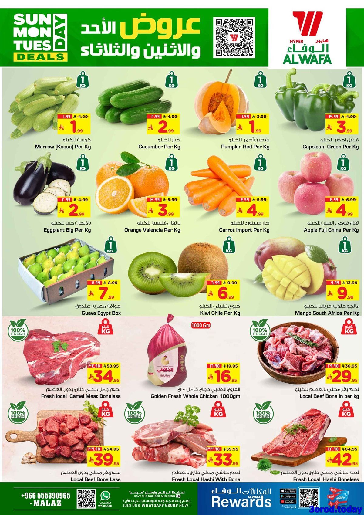 نقدم لكم احدث عروض الوفاء هايبر ماركت الطازج الاحد 11-1-2026 الموافق 23 رجب 1447هـ و تحتوي علي منتجات اللحوم الطازجة مثل لحم البقر والسمك والدجاج مع البرتقال الطازج والحليب والزبادي والمنظفات السائلة والصابون والمنتجات الورقية والأكياس القابلة لإعادة الاستخدام والأرز والشوفان والسجائر والأحذية والملابس والحقائب
