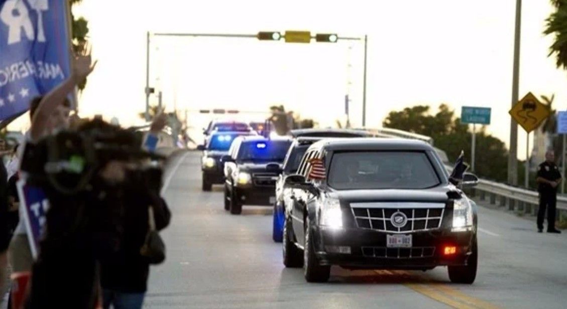 وخلال الرحلة، قام ضباط شرطة على دراجات نارية بإنشاء حصار متحرك للموكب، وكادوا في لحظة ما أن يصطدموا بالشاحنات الصغيرة التي كانت ترافق ترامب.