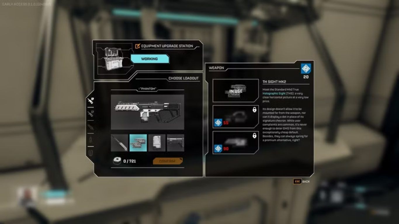 بعد الوصول إلى المستوى الرابع، يجب التوجه إلى Corporate Terminal للمطالبة بالمكافأة، ثم جمع 120 Basic Building Mats لإنشاء محطة Equipment Upgrade Station. بمجرد بناء المحطة، يمكن التفاعل معها للوصول إلى قائمتين رئيسيتين: Weapon Unlocks لفتح الأسلحة، وMod Unlocks لتطبيق التعديلات على كل سلاح. تتيح القائمة الأولى اختيار أي سلاح تم فتحه، بينما تعرض القائمة الثانية جميع التعديلات المتاحة لكل سلاح بشكل مفصل، بما في ذلك تحسين الضرر، مدى الطلقات، ودقة التصويب، والخصائص الخاصة الأخرى.