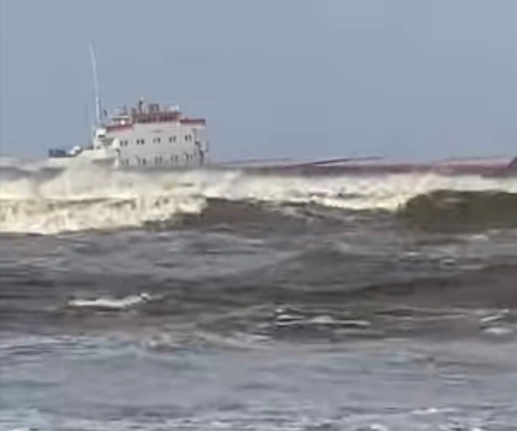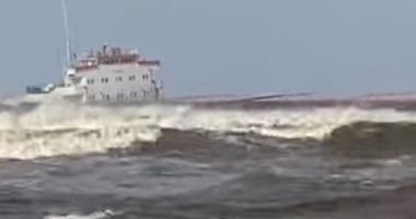 وتعرضت السفينة للجنوح، ودفعتها التيارات المائية القوية باتجاه الشاطئ، وسط صعوبة في التحكم بمسارها بسبب شدة الرياح وارتفاع الأمواج.