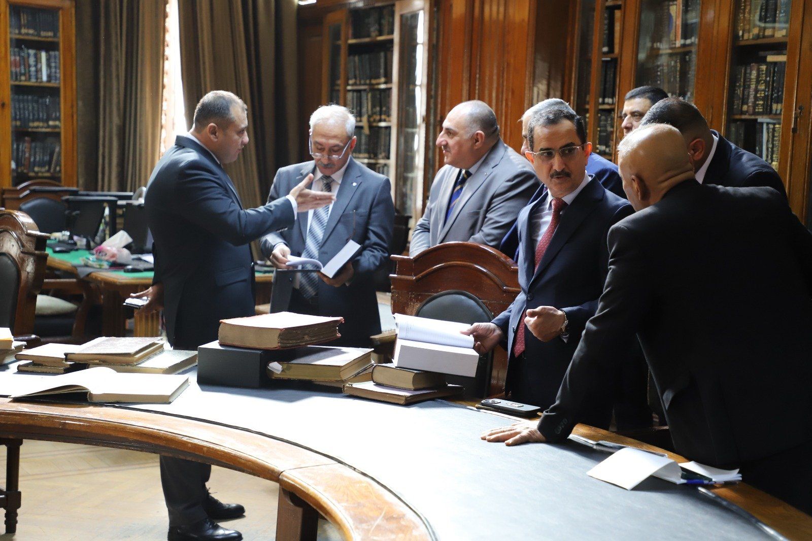 استُهلت الزيارة بجولة تفقدية في مكتبة محكمة النقض التاريخية، حيث اطلع الوفد على نفائس الكتب التراثية والموسوعات القانونية النادرة.