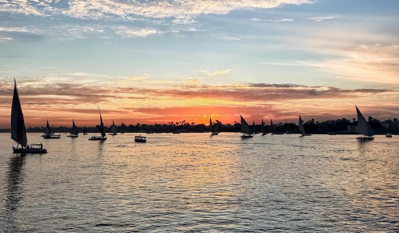 المراكب وقت غروب الشمس بمدينة الأقصر